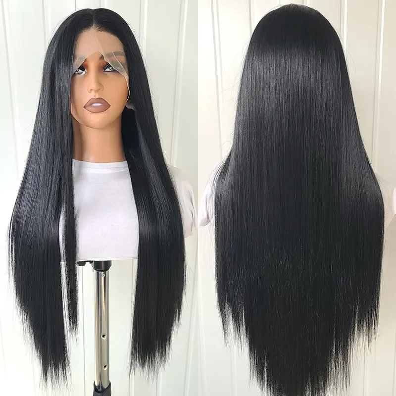 13*4 perruques avant de dentelle perruques droites pour les femmes avec des cheveux synthétiques de haute qualité perruques de dentelle naissance des cheveux naturelle perruque synthétique usage quotidien - TopDealBox