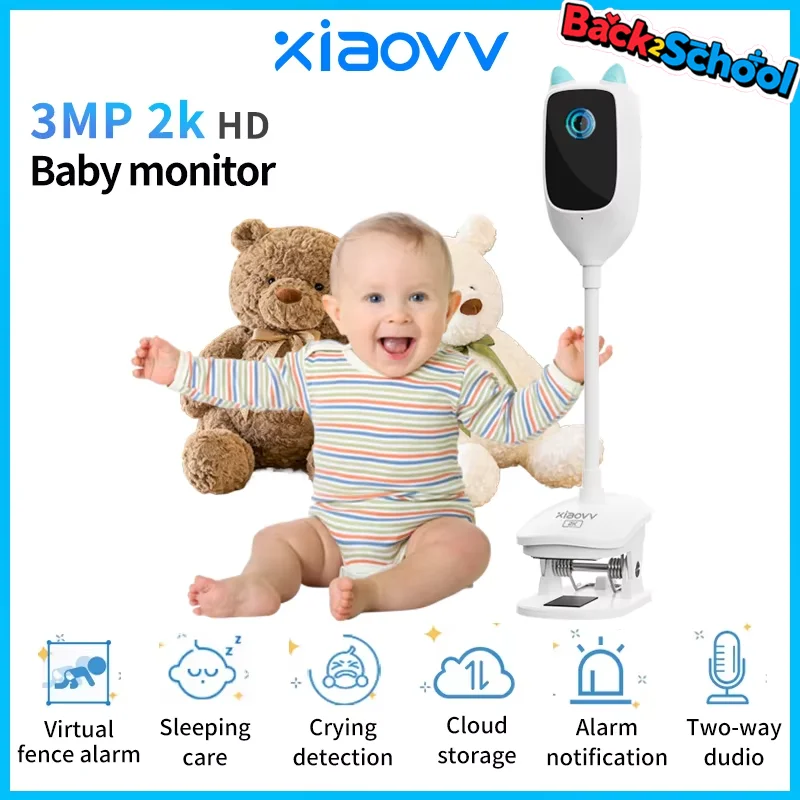 4MP 2K WiFi intérieur haute définition détection de pleurs bébé moniteur couleur vision nocturne caméra réseau rotative à 360 degrés - TopDealBox