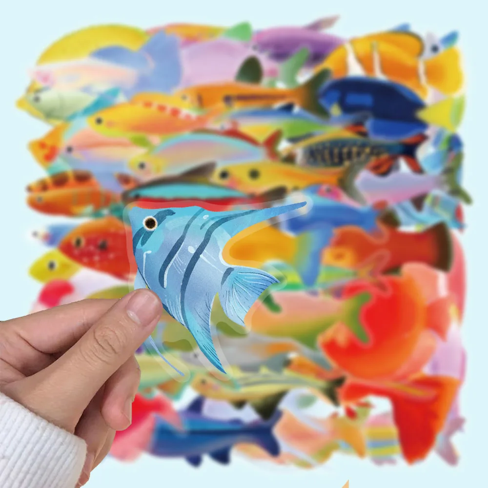 Autocollants en plastique de poisson Tropical, peinture Photo créative, exquis, Animal marin, poisson ornemental, Graffiti, DIY bricolage, 50 pièces - TopDealBox