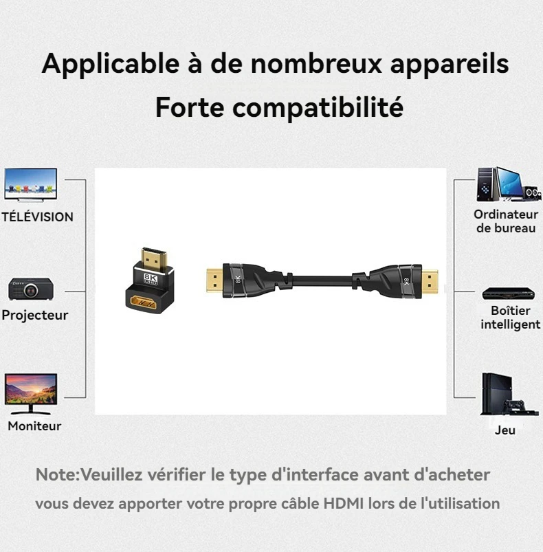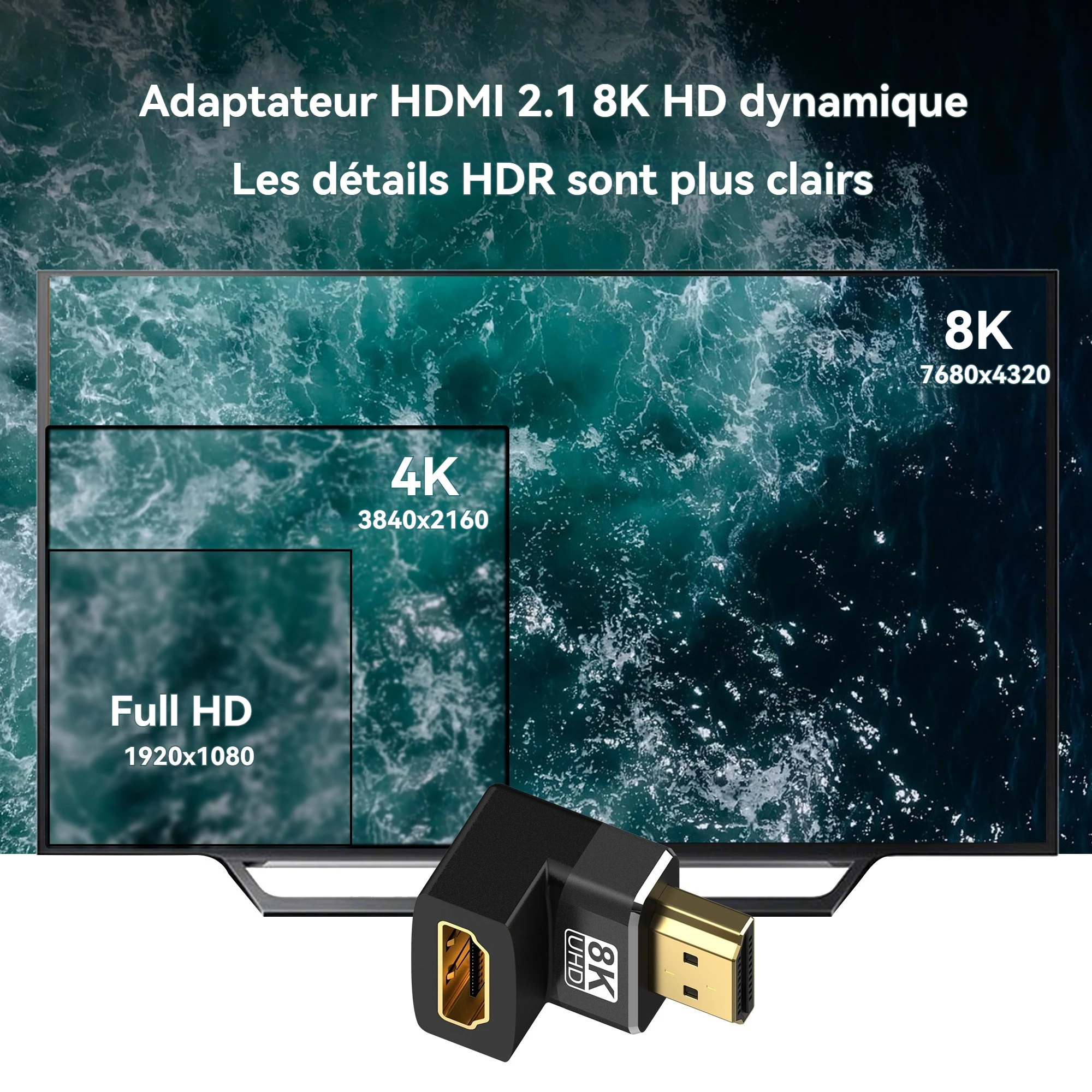 Adaptateur HDMI 90 et 270 degrés, HDMI 2.1 8K @ 60hz 2.0 4K @ 120hz 2K adaptateur HDMI L à Angle droit pour HDTV PS4 PS5 Lapto - TopDealBox