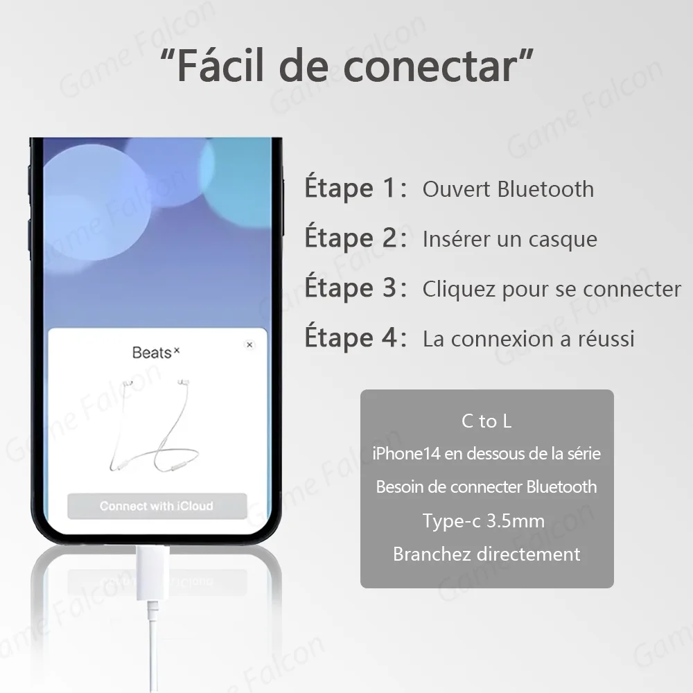Applicable à Apple iPhone 15 14 13 Pro haute fidélité Bluetooth Câbler Type-C 3,5 mm adapté à la tablette iPad Samsung Xiaomi - TopDealBox