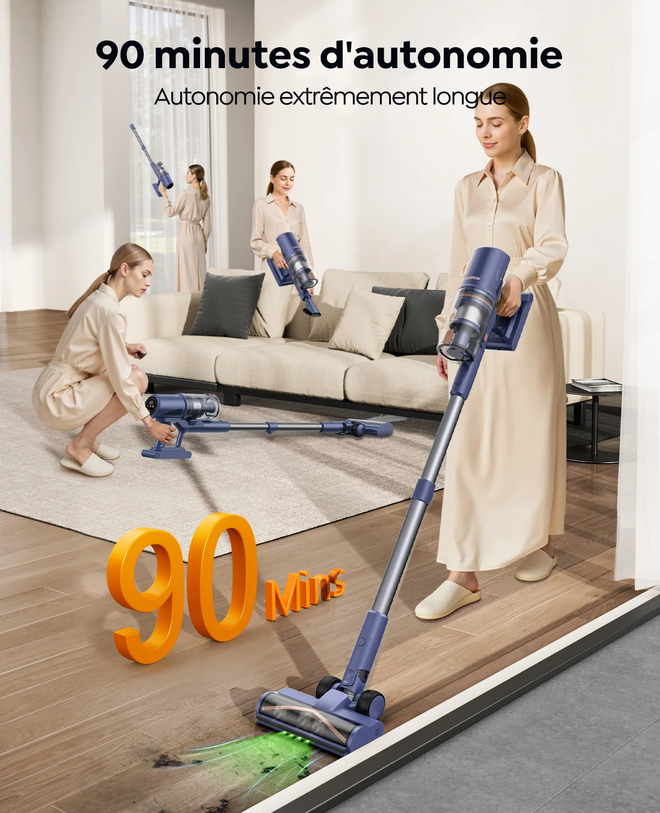 ♡Aperçu rapideLaresar X11-Aspirateur sans fil 550W, puissance d'aspiration 55000PA, godet à poussière pour maison intelligente, autonomie de 60 minutes, jeu de filtres 3 pièces107.53 EURPopulaire★★★★★★4.9