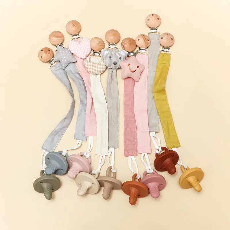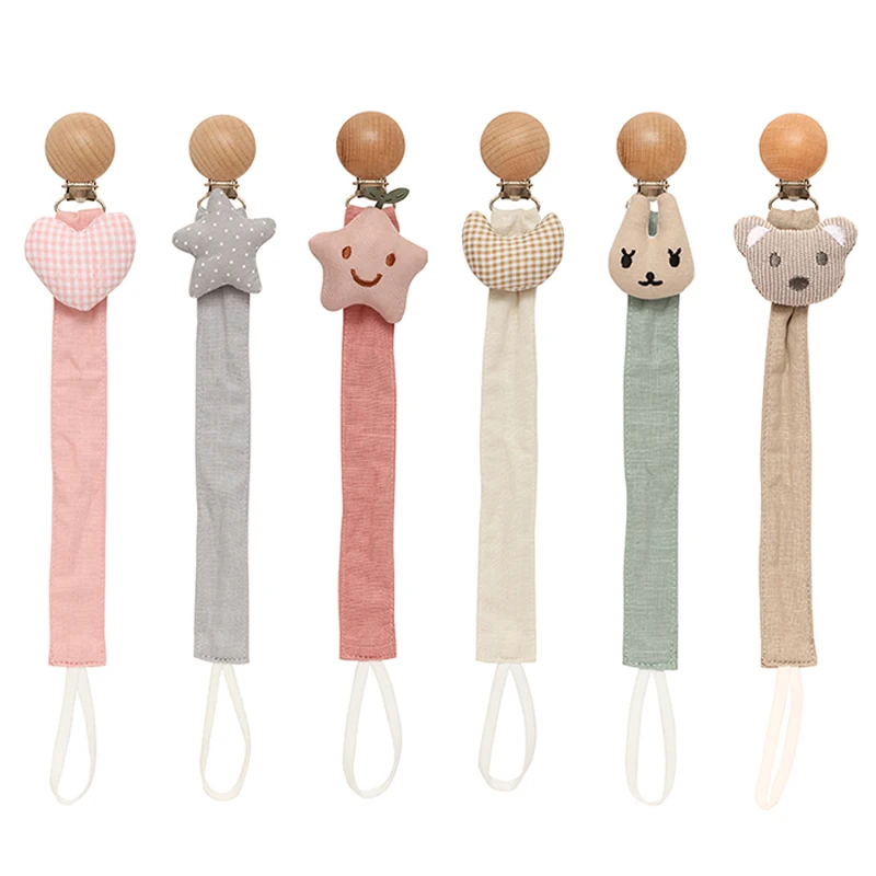Attache-sucette pour bébé, nouveau-né, en coton et bois, chaîne de sucette, porte-tétine, matériau écologique - TopDealBox