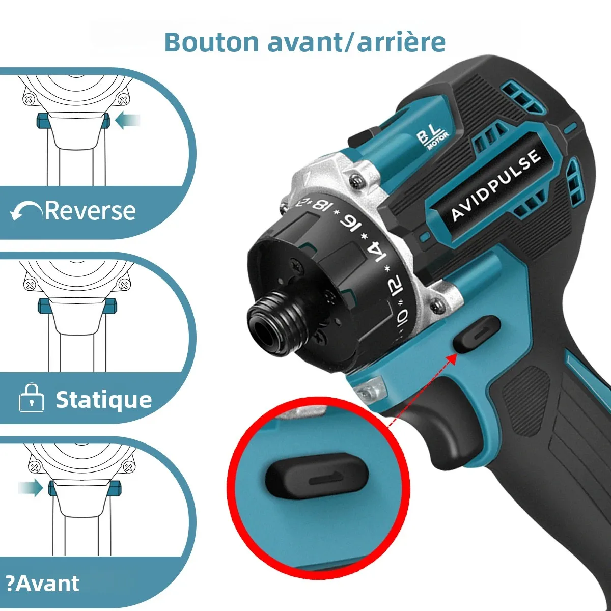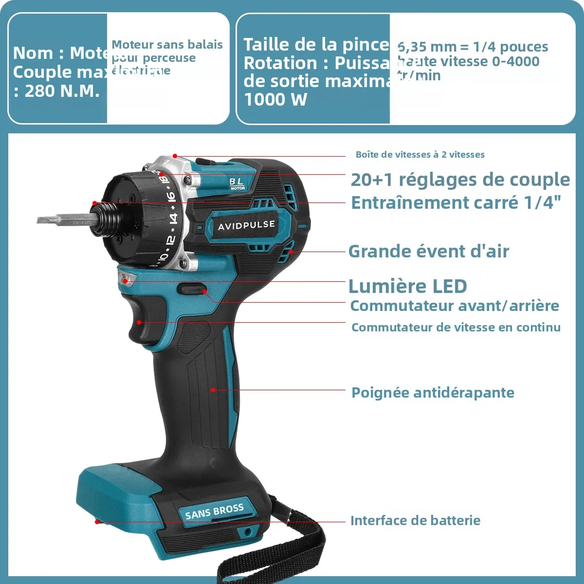 AvidPulse 20 + 1 couple 1/4 pouces tournevis électrique sans brosse sans fil 280N.m perceuse électrique outil électrique pour batterie Makita 18v - TopDealBox