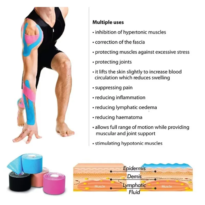 Bande élastique de kinésiologie, 5cm x 5m, genouillère de récupération athlétique, soutien des genouillères, bandage de fitness - TopDealBox