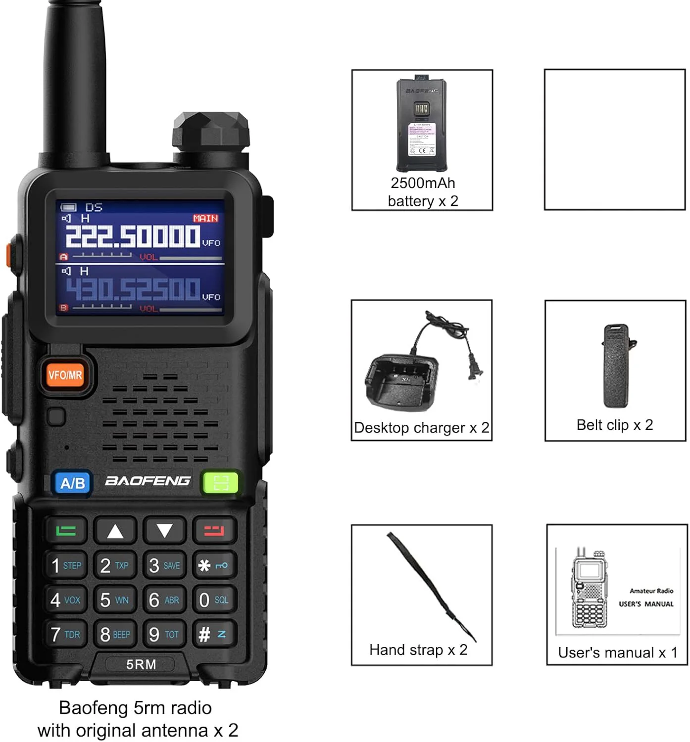 ♡Aperçu rapideBaofeng 5RM 8W Radio amateur 136-174/220-260/400-520MHz Radio bidirectionnelle 6 bandes NOAA récepteur météo une fréquence clé assortie UV-5RH36.19 EUREUR 38.18Populaire★★★★★★4.8