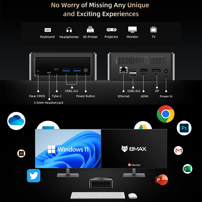 ♡Aperçu rapideBMAX B4 Turbo Mini PC Windows 11 PC Intel N150 16GB 512GB SSD 2 * HDMI 1 * Type-C prend en charge les graphiques Intel 4K @ 60Hz 1000MHz179.99 EURPopulaire★★★★★3.0