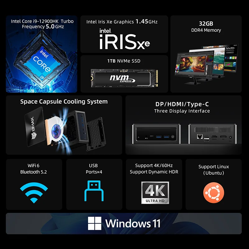 ♡Aperçu rapideCHUWI UBox Mini PC AMD Ryzen 5 6600H 16GB DDR5 512GB SSD Windows 11 Pro 4K 144Hz décording WiFi 6 BT 5.2 étendre M.2 1T * 2 650g272.99 EUREUR 361.57Populaire★★★★★★4.9