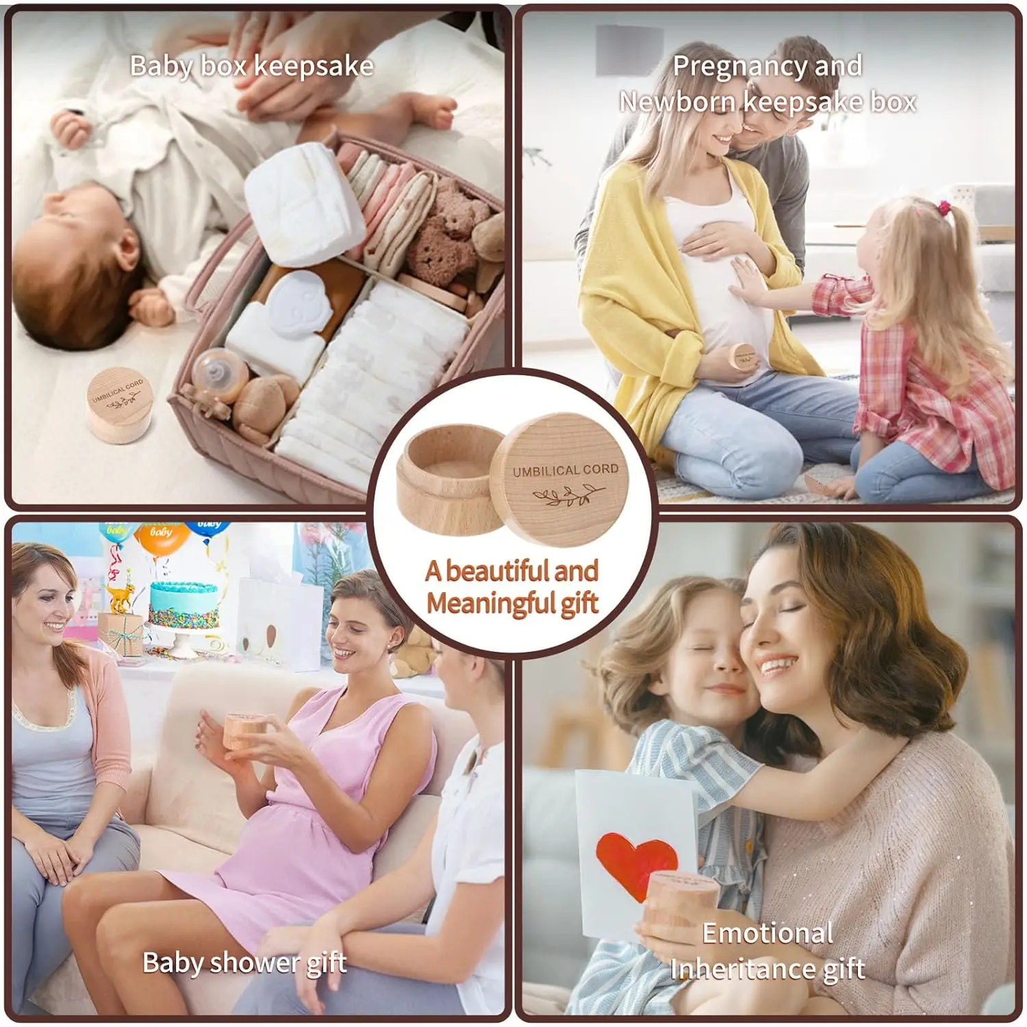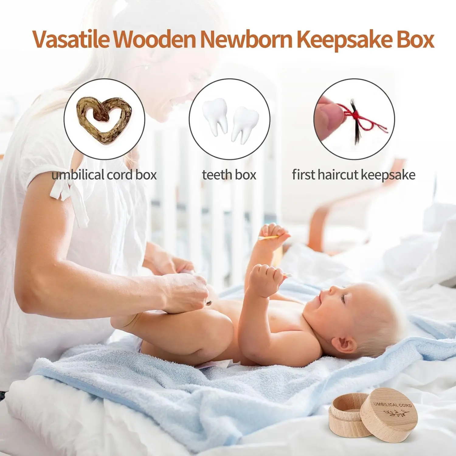 Boîte à souvenirs de cordon ombilical en bois, boîte à mémoire de bébé gravée pour le stockage de cordon ombilical, facile à ouvrir, premier souvenir de coupe de cheveux - TopDealBox