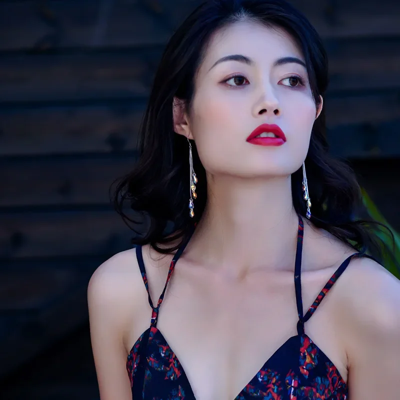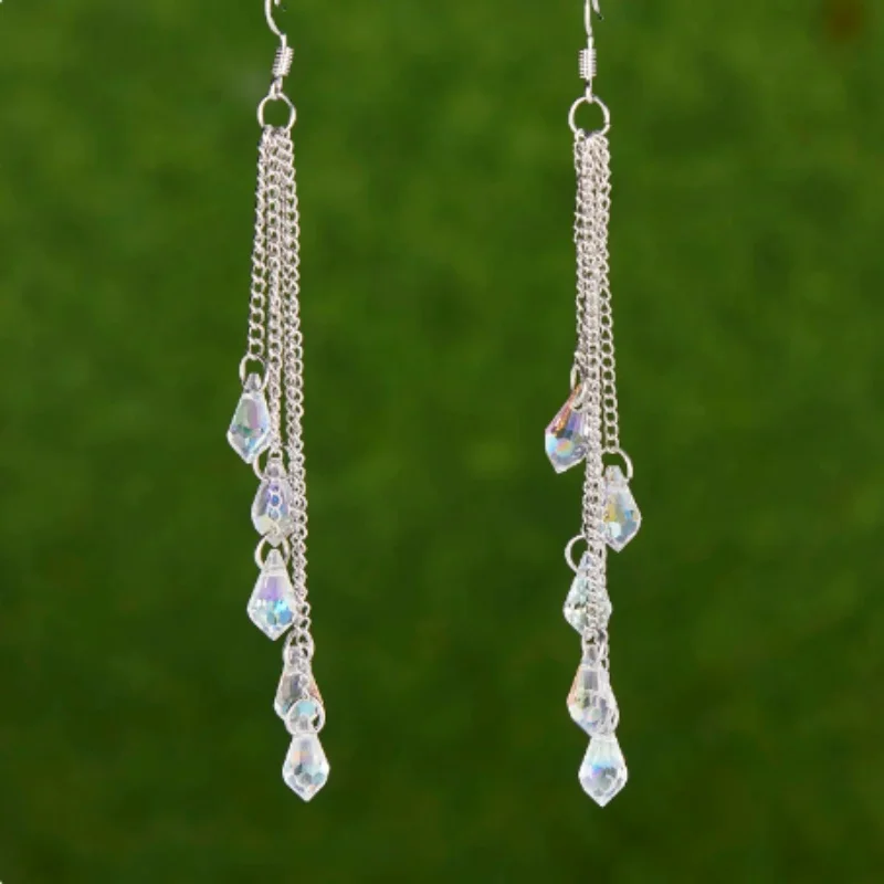 Boucles d'oreilles pompon goutte d'eau en cristal pour femmes, boucles d'oreilles longues colorées, tempérament, patients, fête de mariage, cadeaux de bijoux, mode - TopDealBox