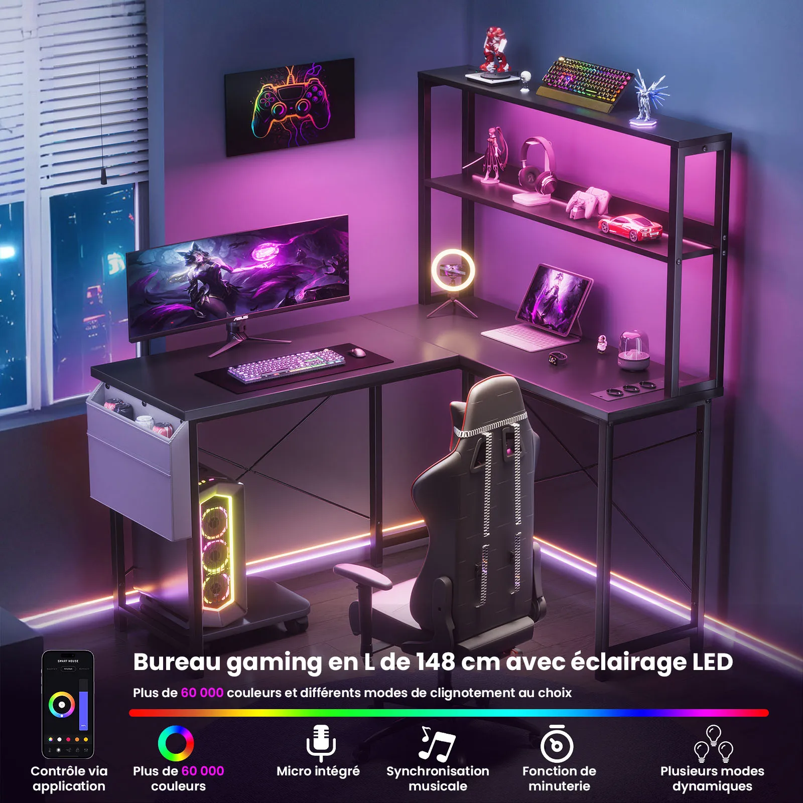 ♡Aperçu rapideTable d'ordinateur de bureau en forme de L avec prise d'étagère USB LED RGB table de bureau de jeu gris/noir121.52 EUREUR 156.40Populaire★★★★★★4.7