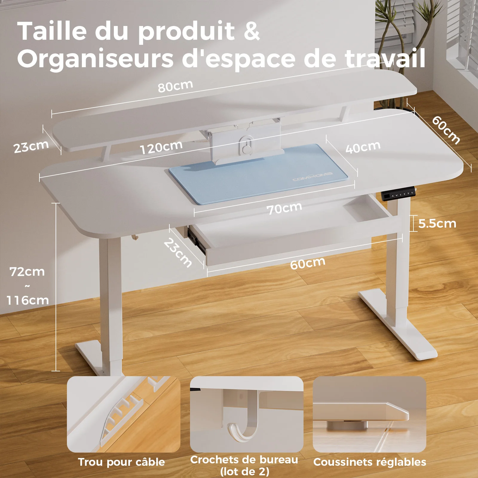 ♡Aperçu rapideBureau réglable en hauteur COMHOMA avec port USB et crochet, bureau d'ordinateur réglable électriquement, bureau assis-debout145.79 EUREUR 156.40Populaire★★★★★★4.8