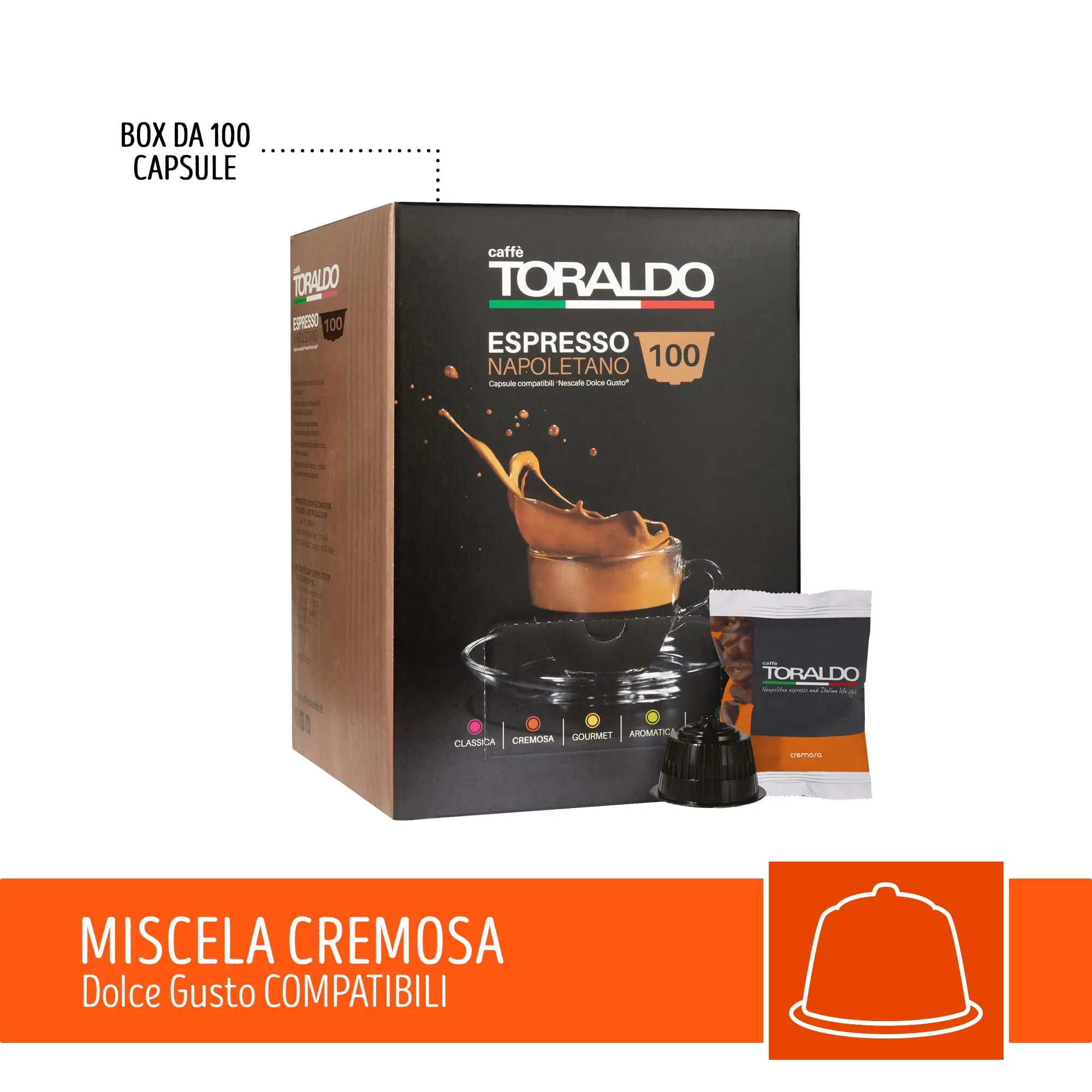 CAFÉ TORALDO | Compatible Dolce Gusto * | Café sélectionné, grillé et torréfié en Italie | Excellence du café napolitain (400 capsules, mélange crémeux) - TopDealBox