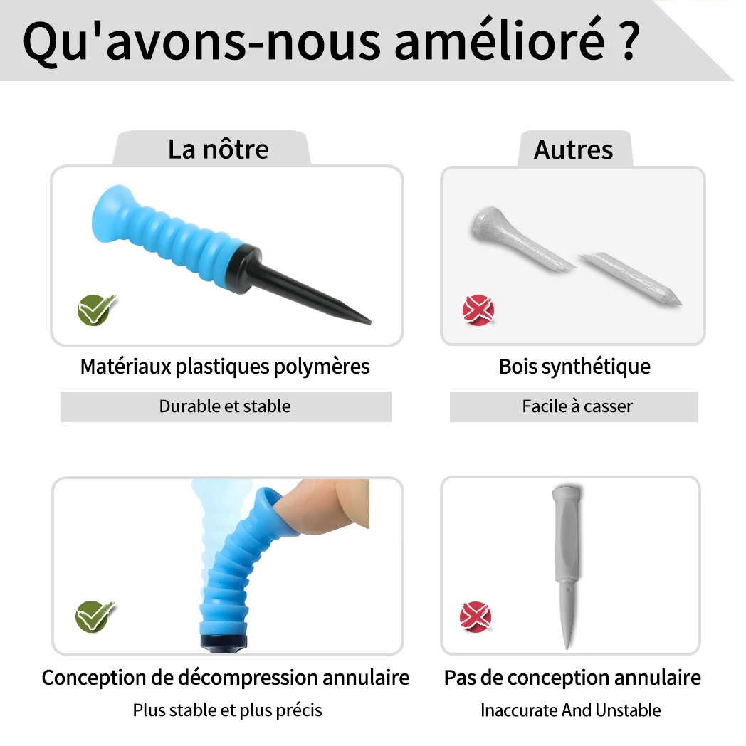 ♡Aperçu rapideCaiton-Tees de golf en plastique réglables, tête en caoutchouc souple, durable et léger pour des coups stables, 85mm, 3,34 po, gamme 22mm, 0,87 po, 5 pièces2.99 EUREUR 24.13Populaire★★★★★★4.8