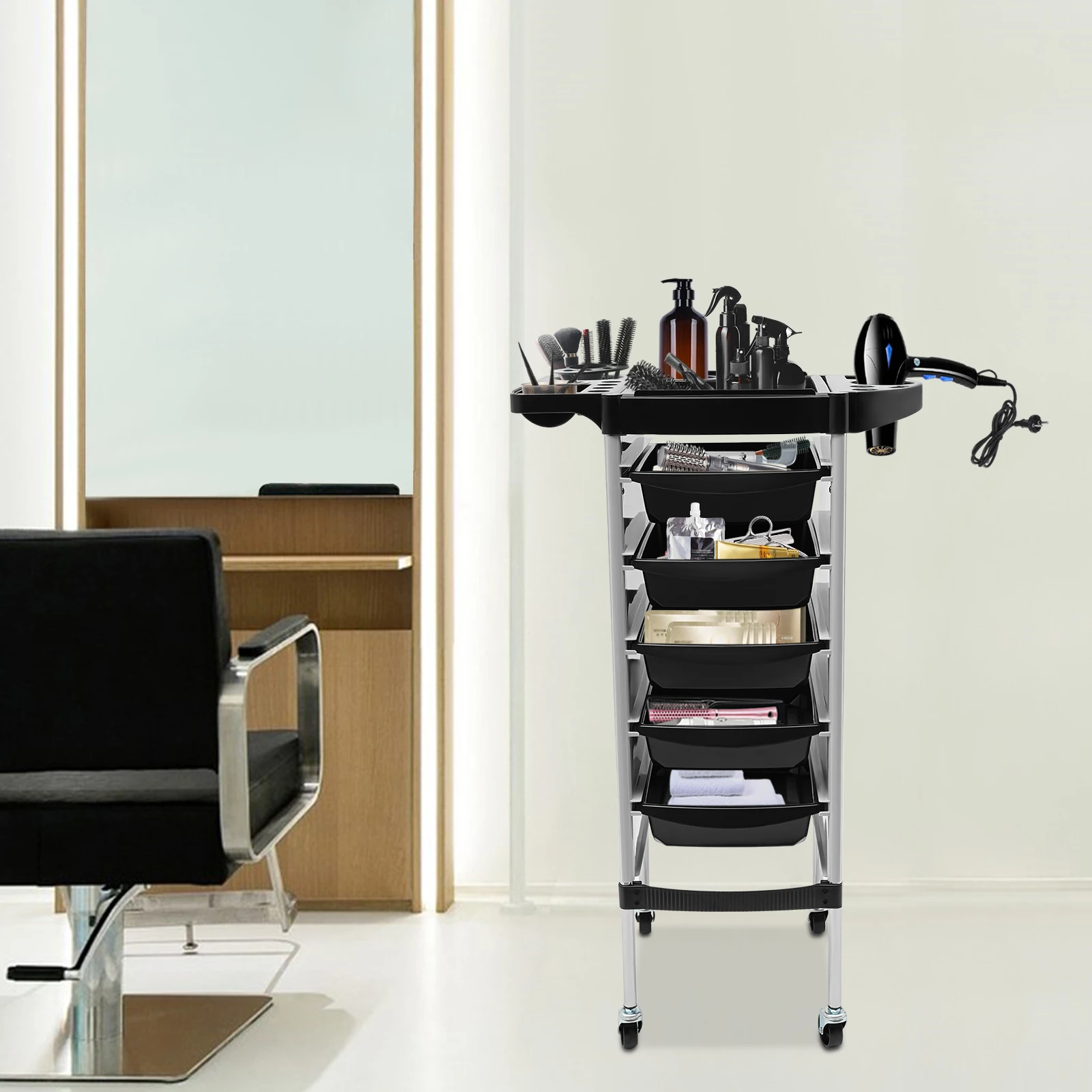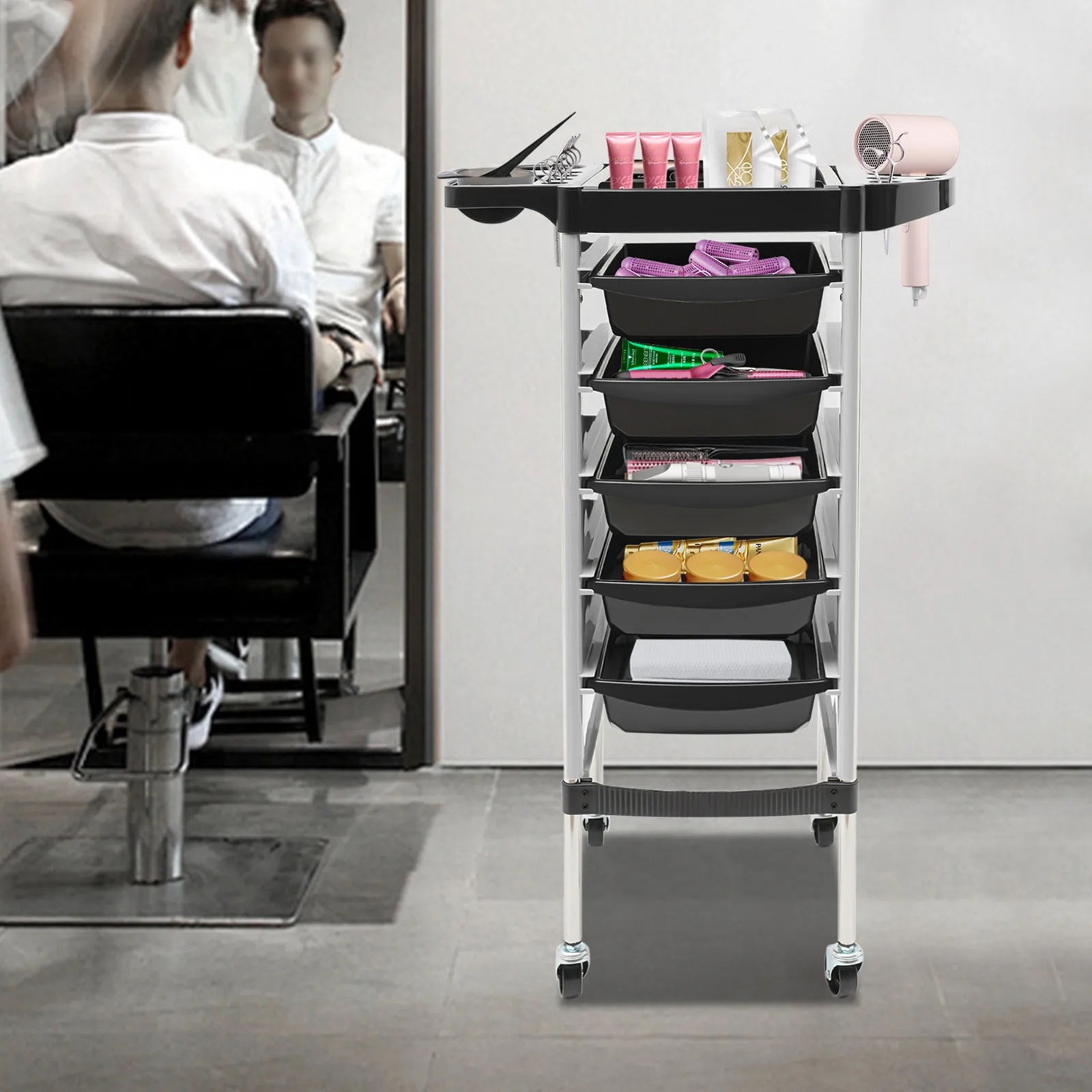 ♡Aperçu rapideChariot roulant pour Salon de coiffure, chariot de rangement pour outils de Salon de coiffure avec roulettes avec 5 tiroirs et 2 supports pour sèche-cheveux65.99 EUREUR 912.54Populaire★★★★★5.0