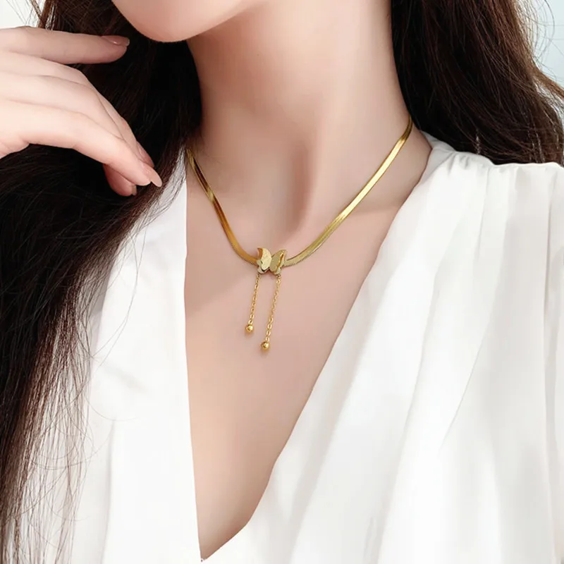 Collier papillon givré en acier inoxydable pour femmes, couleur or argent, collier ras du cou à chaîne serpent, bijoux de fête à la mode féminine - TopDealBox