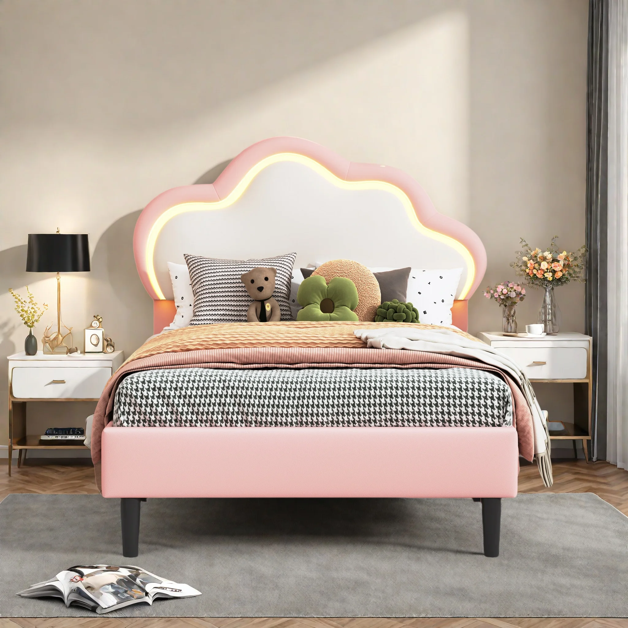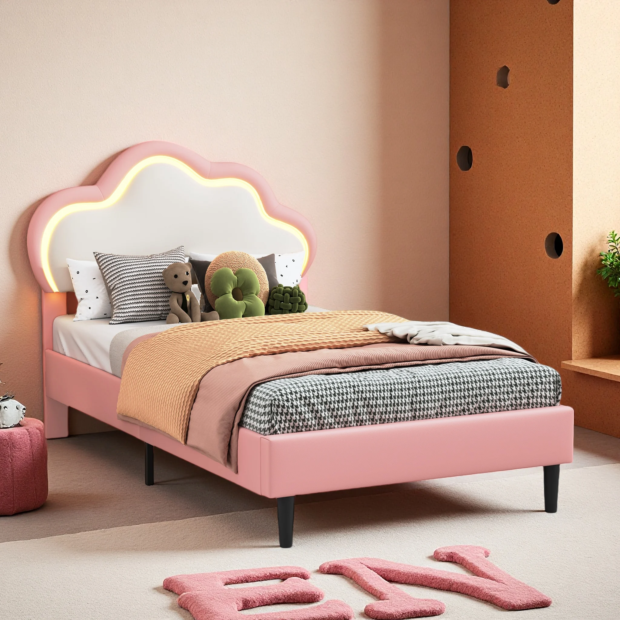 ♡Aperçu rapideLit enfant 90/140x200 cm, Lit simple rembourré avec éclairage LED, tête de lit couronnes et sommier à lattes, en velours, rose161.53 EURPopulaire★★★★★★4.9