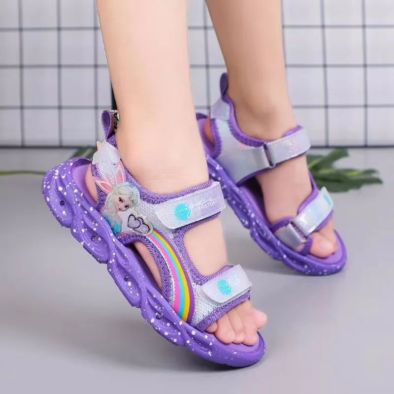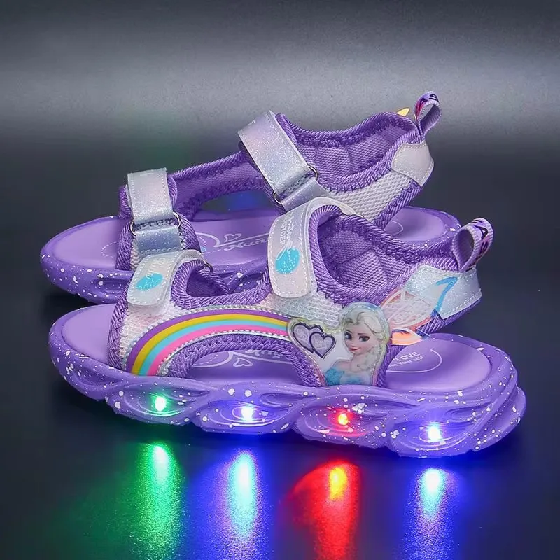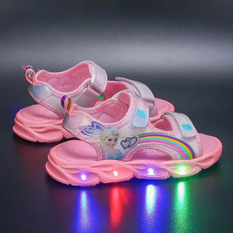 Disney-Chaussures décontractées avec lumières LED pour enfants, sandales d'été pour femmes, chaussures de plage roses pour enfants, princesse Elsa, taille 22-31 - TopDealBox