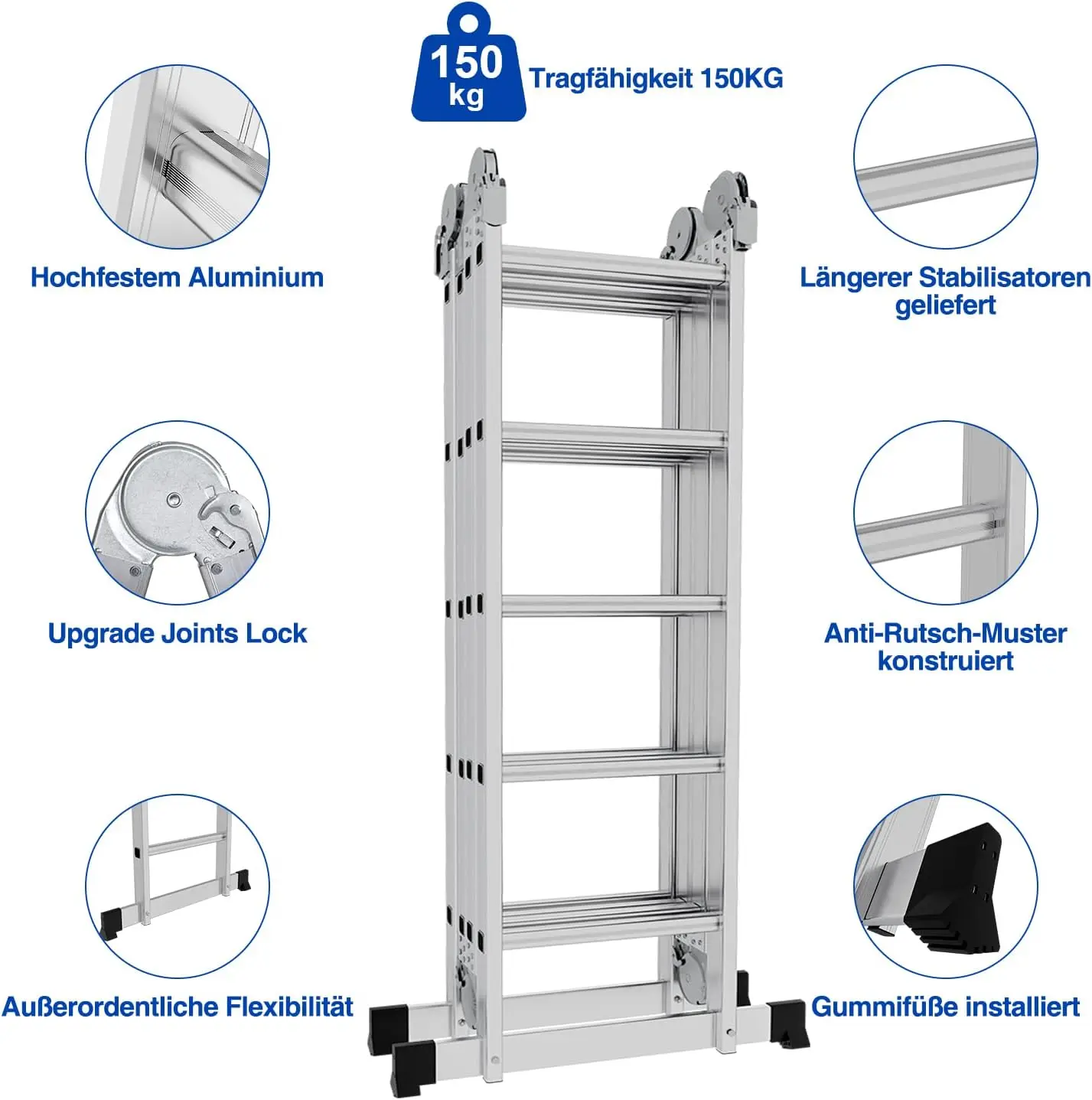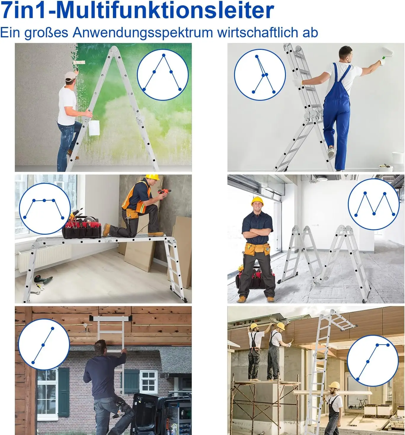 Échelle Multifonction 4x5, 582 cm, 7 en 1, Pliante, Ménage, Travail, Plateforme - TopDealBox