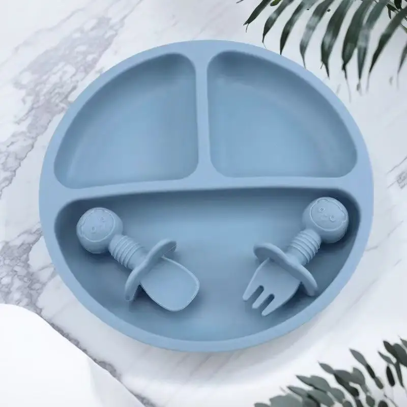 Ensemble d'alimentation en Silicone, 3 assiettes à ventouse ours de dessin animé avec cuillères et fourchettes, adaptées aux vaisselle sans BPA pour enfants de moins de 6 ans - TopDealBox