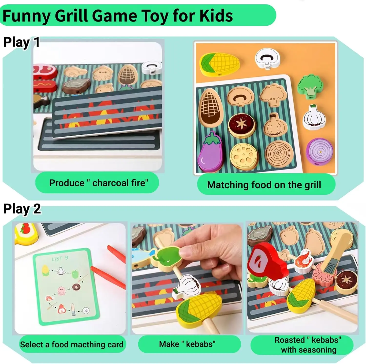 Ensemble de jouets de barbecue en bois, jouets de cuisine, jeu de simulation, jeu de correspondance des aliments, jeu de rôle pour enfants, jouets à motricité Fine pour garçons et filles - TopDealBox