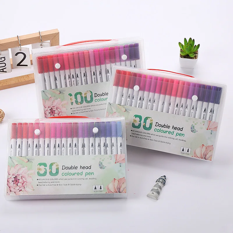 Ensemble de marqueurs de couleur lavables à Double tête, 24/48/60/80/100 couleurs, fournitures artistiques pour artiste, papeterie coréenne, fournitures scolaires - TopDealBox