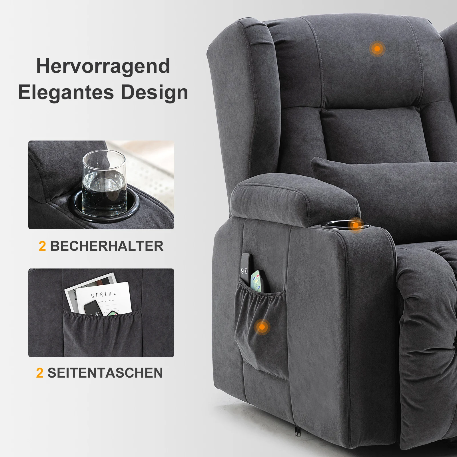 Fauteuil inclinable COMHOMA, fauteuil de massage avec surface en tissu, fauteuil releveur électrique, fauteuil TV, fauteuil avec fonction d'inclinaison, tissu - TopDealBox