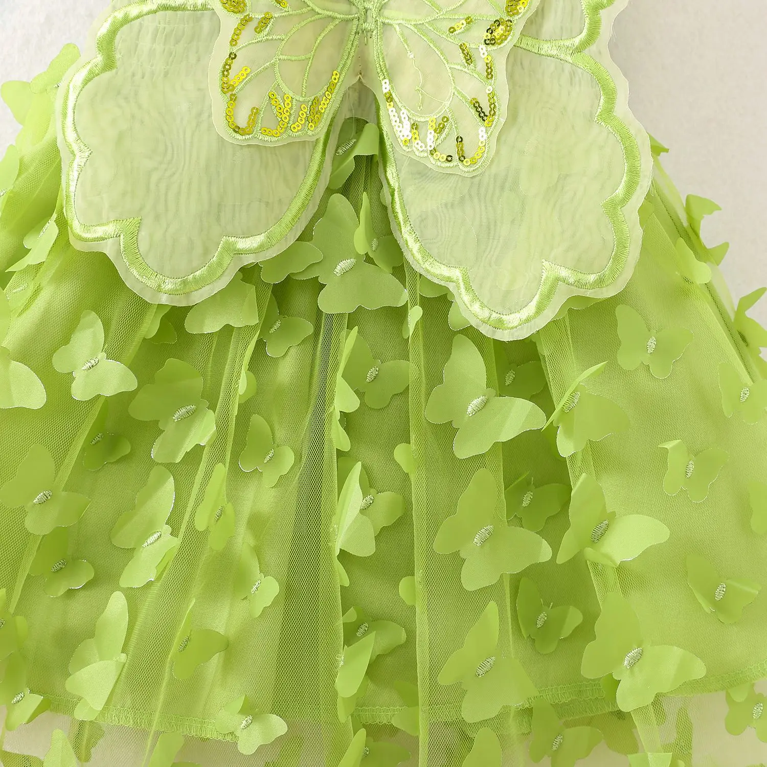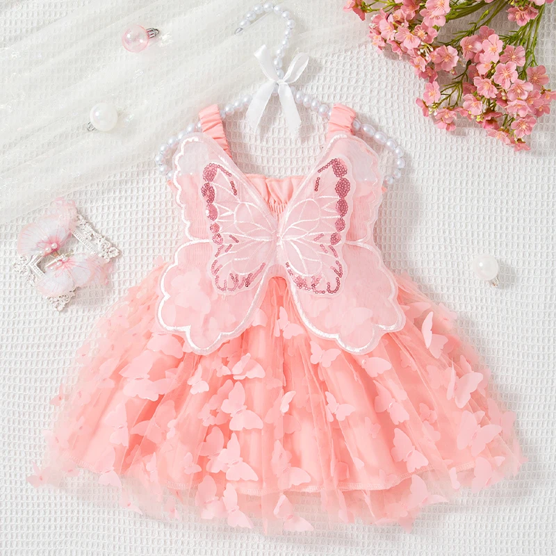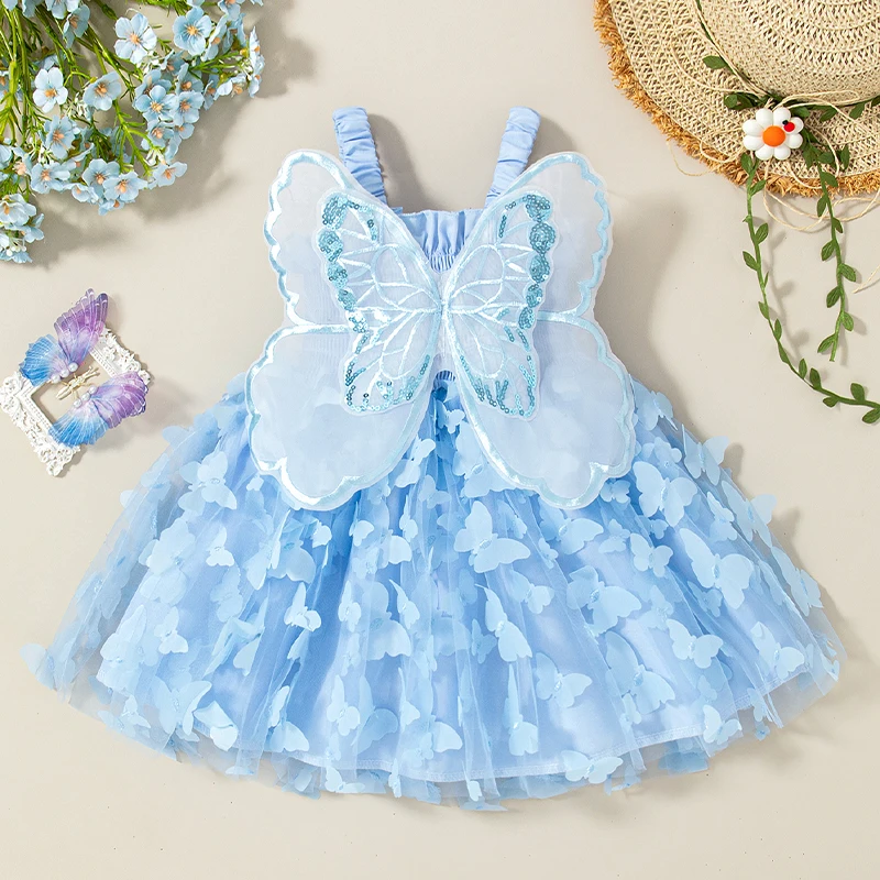 Fille enfant robe été motif papillon couleur unie licou gonflé bébé fille robe mignon magnifique bébé vêtements fille - TopDealBox