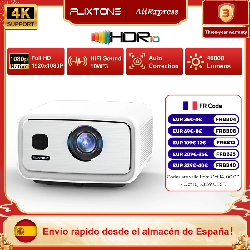 ♡Aperçu rapideProjecteur FlixTone D9W Ultra 3000 ANSI Full HD 1080P pour films Android WiFi 6 projecteur de faisceau de cinéma maison pour vidéo extérieure proyectores en España330.69 EUREUR 4560.54Populaire★★★★★★4.7