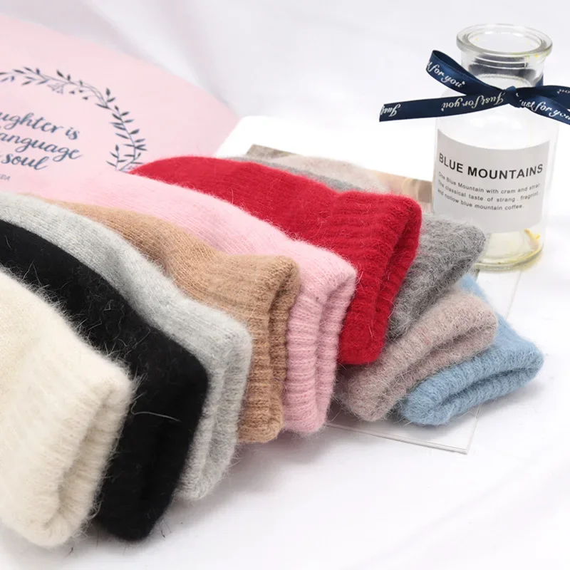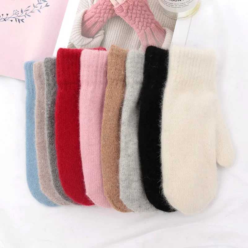 Gants chauds d'hiver en fourrure de lapin pour femmes, mitaines d'extérieur en laine épaisse sans doigts, cadeaux pour filles - TopDealBox