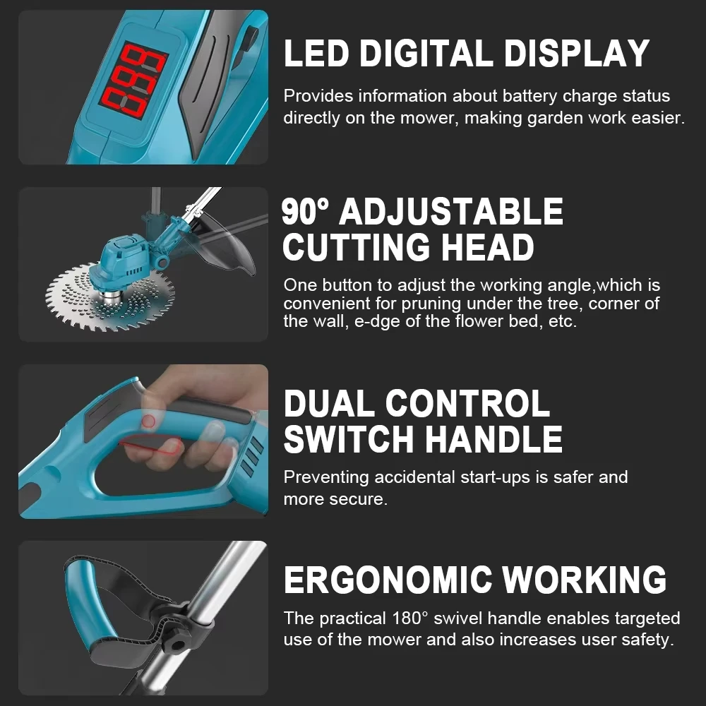 Gismo tondeuse à gazon électrique sans brosse 9 pouces sans fil coupe gazon de jardin longueur réglable outil de coupe pour Makita 18V batterie broche - TopDealBox