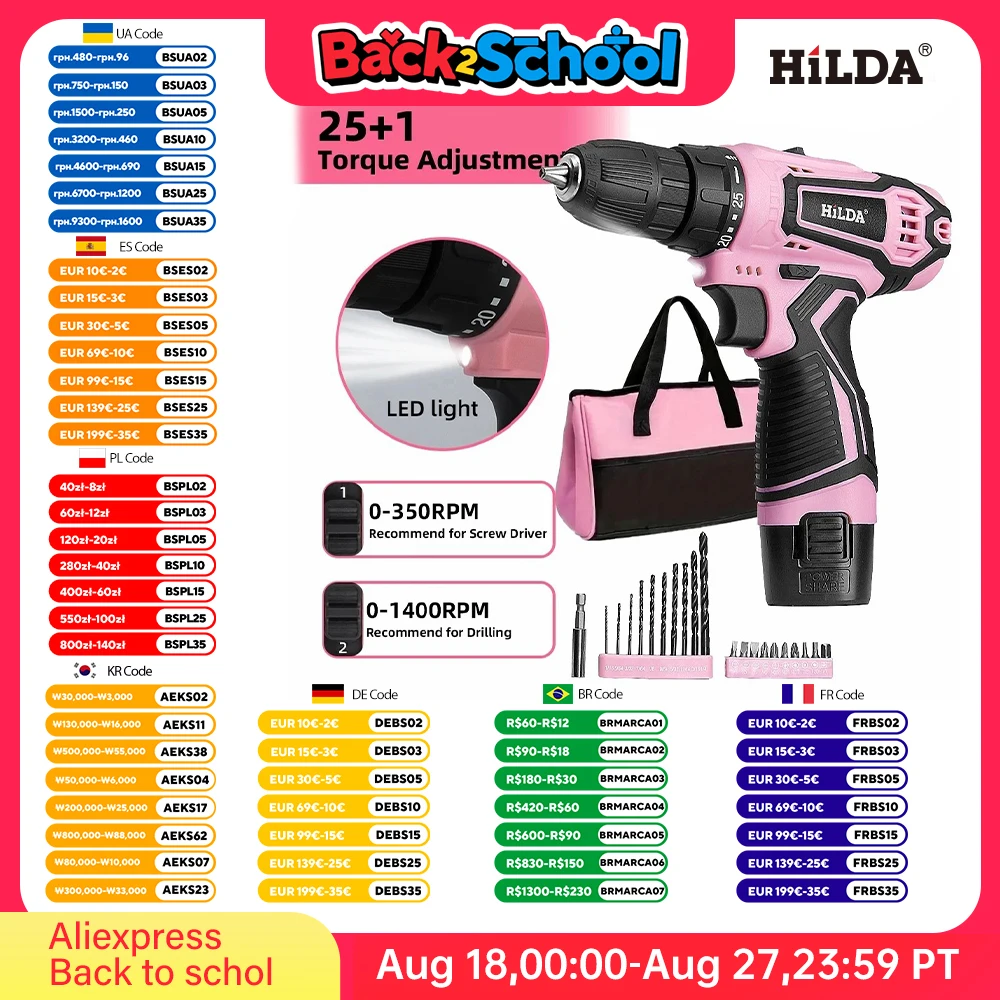 HILDA perceuse électrique 12V perceuse sans fil tournevis électrique Mini pilote de puissance sans fil batterie Lithium-Ion DC - TopDealBox