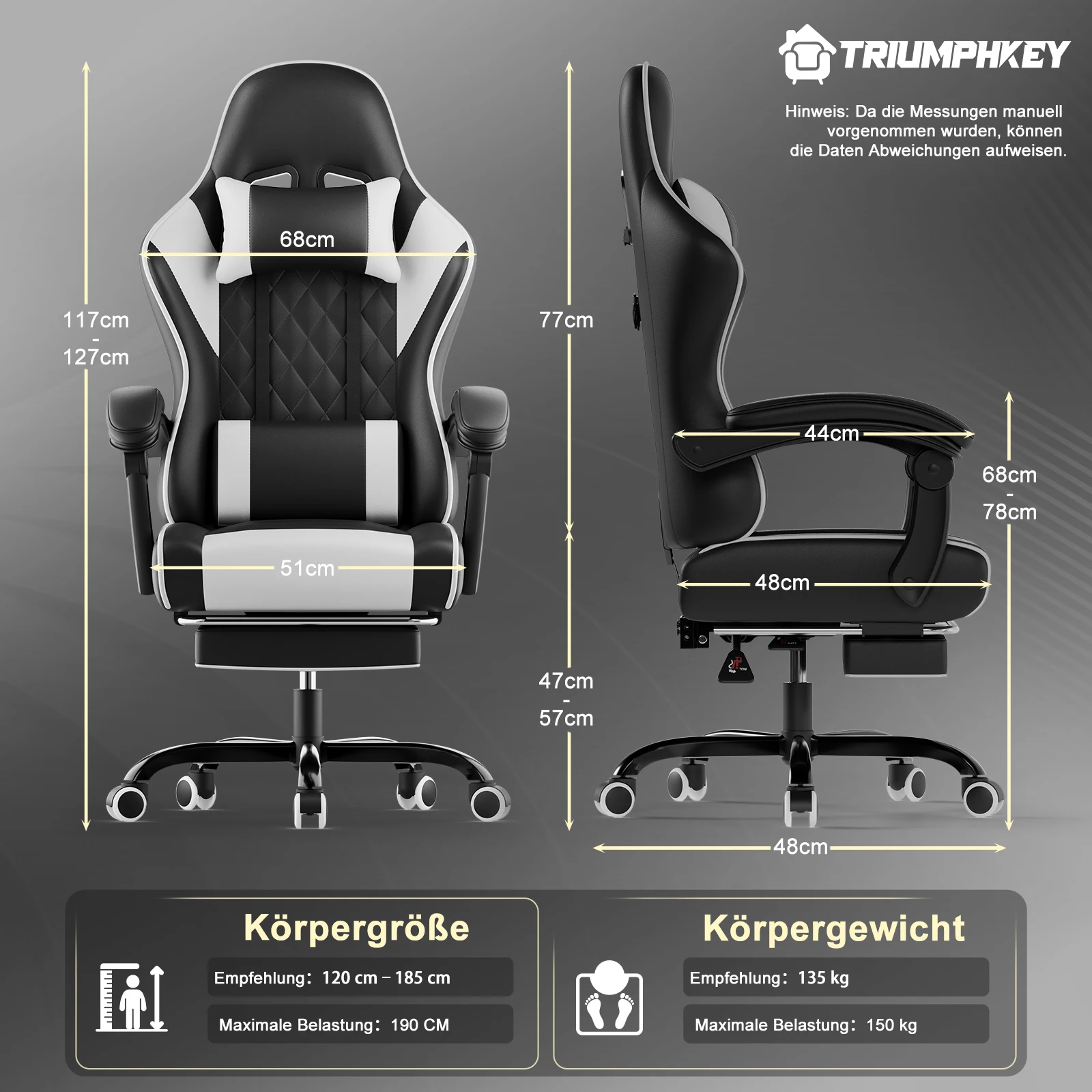 ♡Aperçu rapideChaise de bureau ergonomique Durrafy, chaises de bureau, chaise de bureau avec appui-tête réglable, accoudoirs, capacité de charge de 150 kg, noir61.62 EUREUR 83.50Populaire★★★★★★4.7