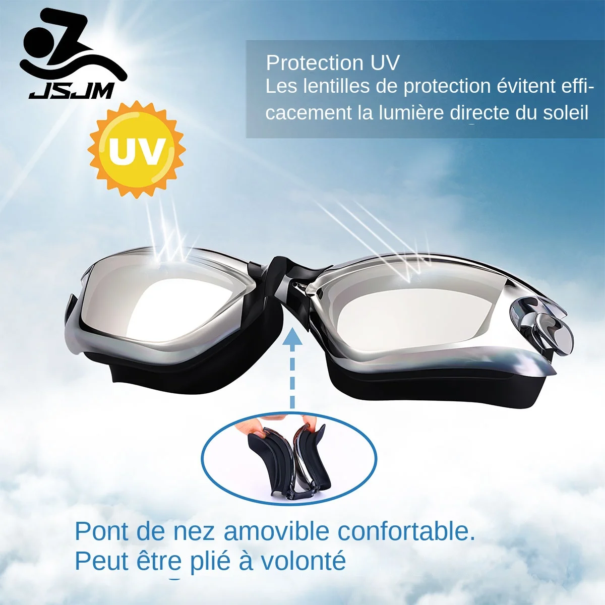 JSJM nouveau professionnel adulte Anti-buée Protection UV lentille hommes femmes lunettes de natation étanche réglable Silicone lunettes de natation - TopDealBox