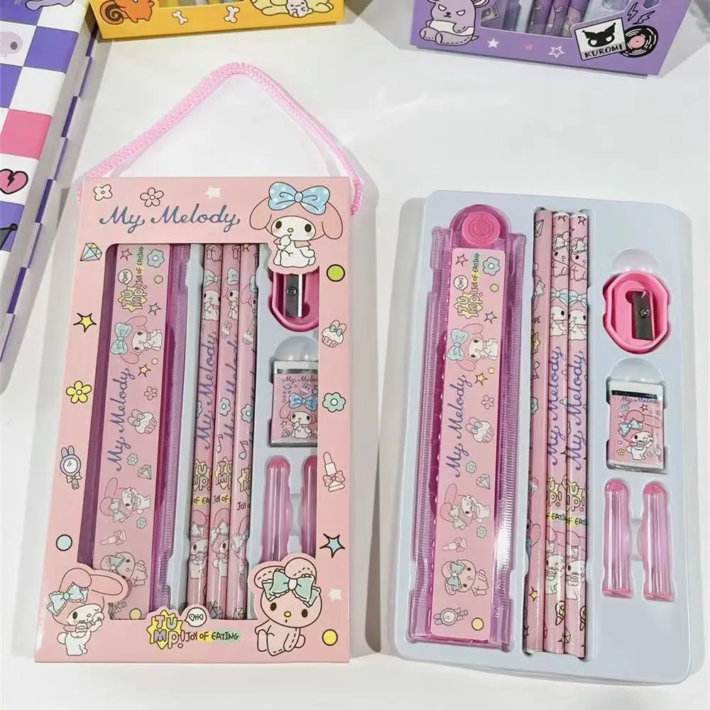 Kawaii cannelle Kuromi ma mélodie crayon gomme taille-crayon règle ensemble de papeterie dessin animé mignon fournitures scolaires cadeau - TopDealBox