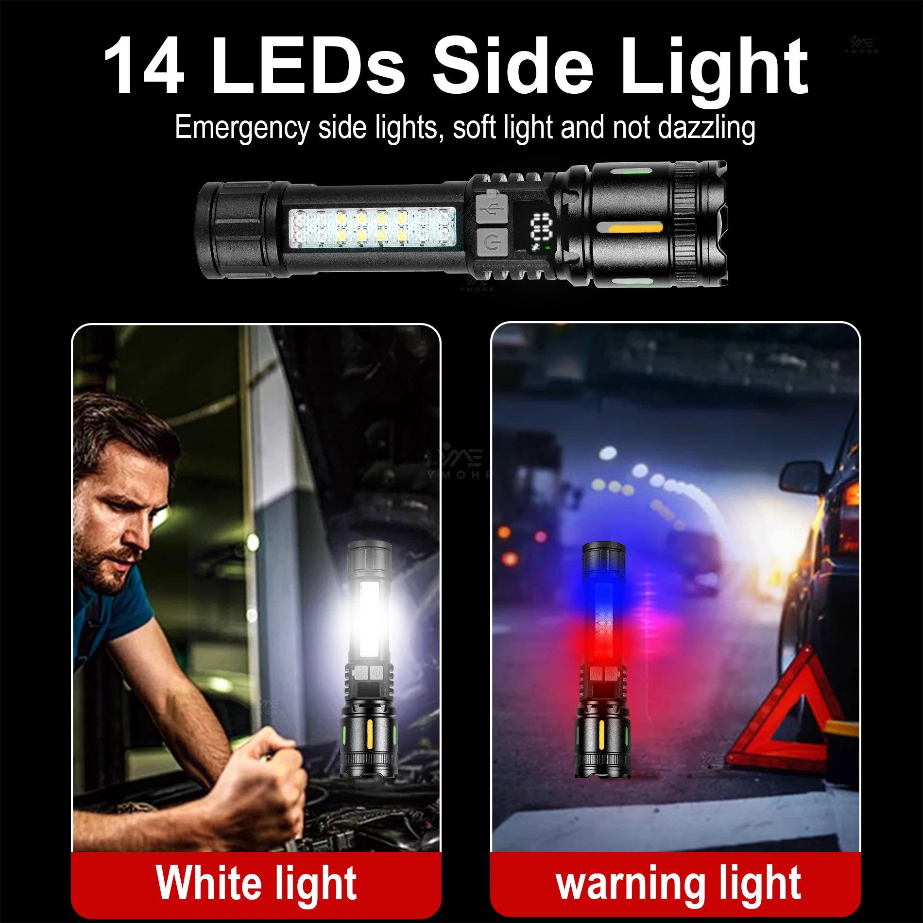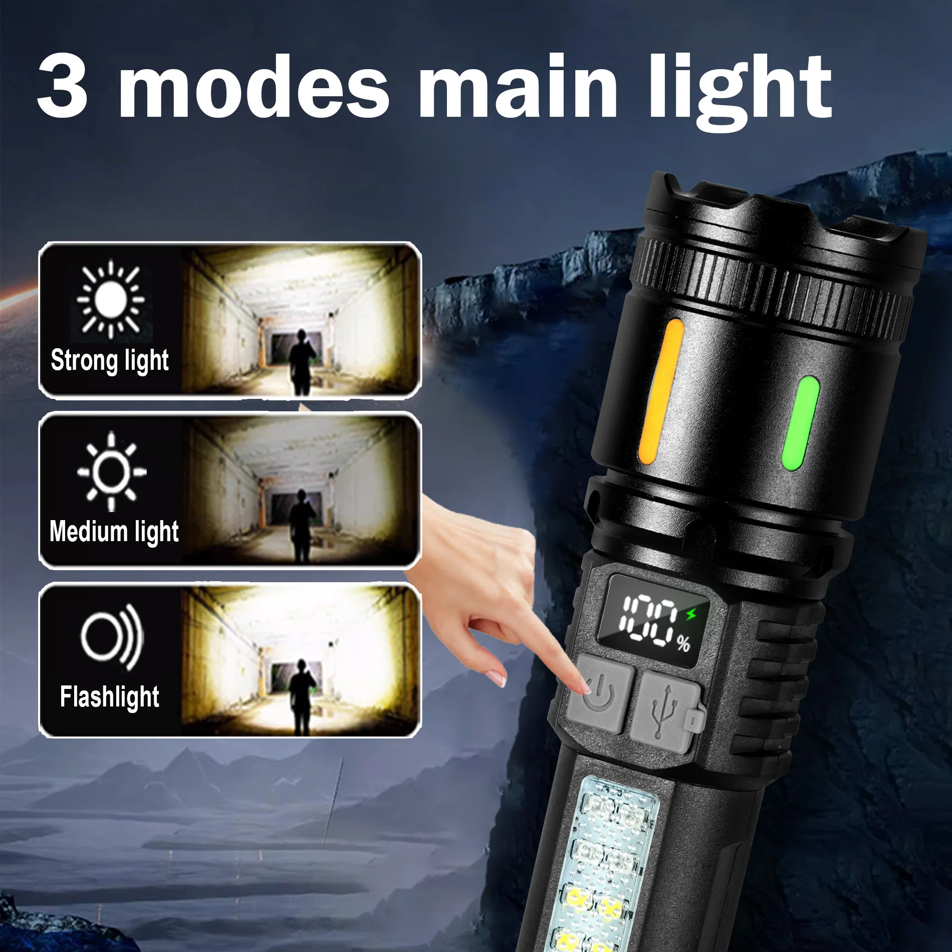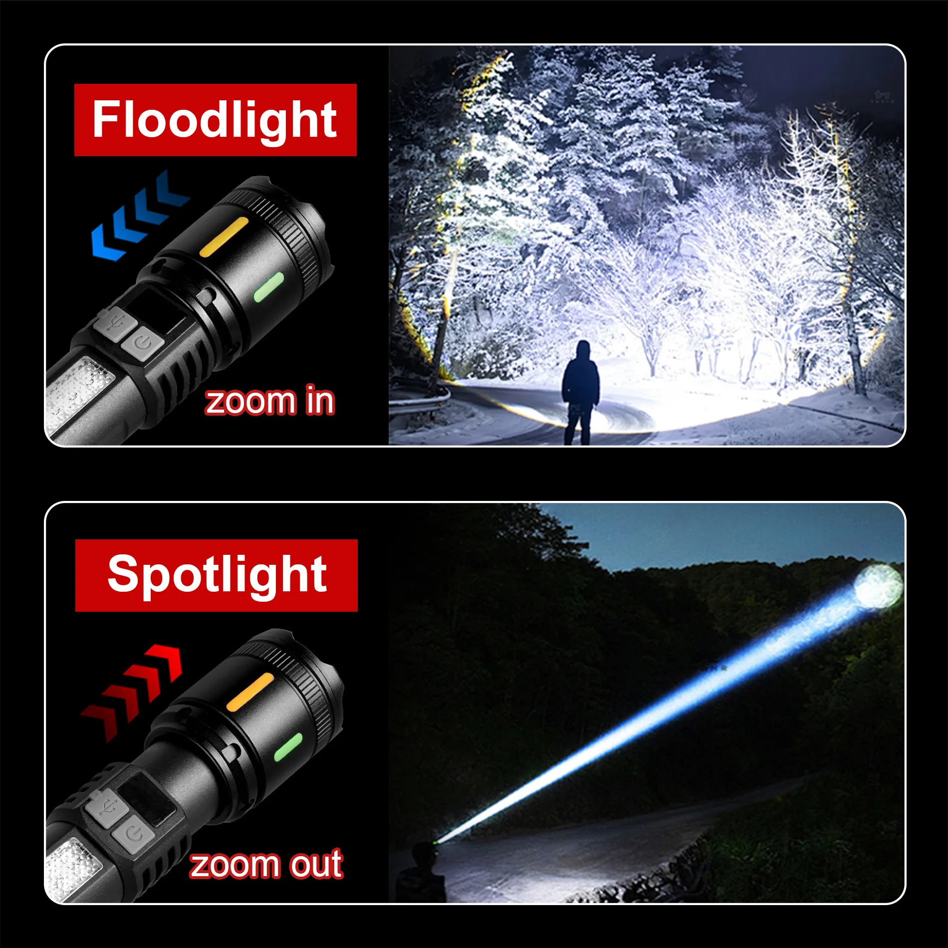 ♡Aperçu rapideLampe de poche LED haute puissance, torche étanche rechargeable de Type C avec lumière latérale COB, lampe d'extérieur Portable avec Zoom pour Camping et randonnée3.09 EUREUR 26.38Populaire★★★★★★4.9