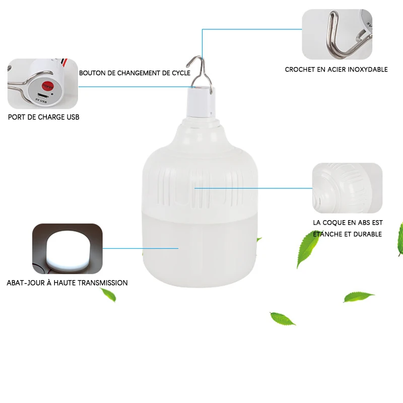 ♡Aperçu rapideAmpoule LED Rechargeable 7w 9w 12w 15w 85-265V, ampoule de secours Portable suspendue, lampe de Camping pour tente, maison, panne de courant, porche3.39 EUREUR 26.46Populaire★★★★★★4.6