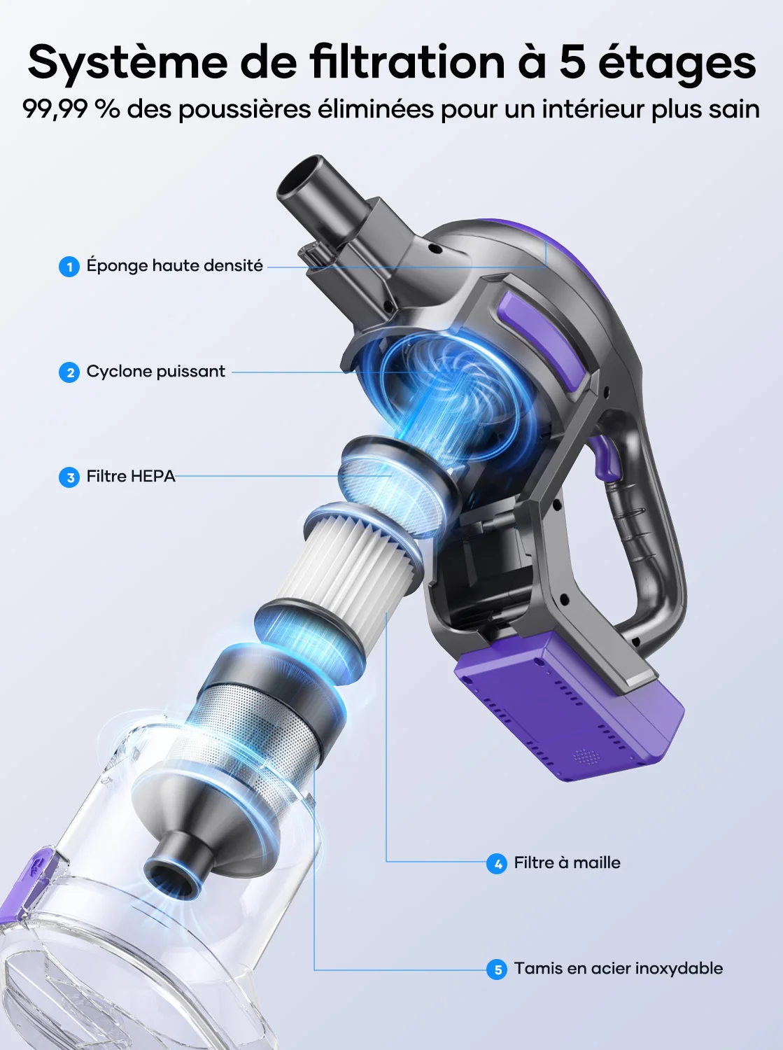 Laresar V10 Lite - Aspirateur sans fil 38000Pa à puissance d'aspiration élevée, design ergonomique et autonomie de 45 minutes, parfait pour tapis et poils d'animaux - TopDealBox