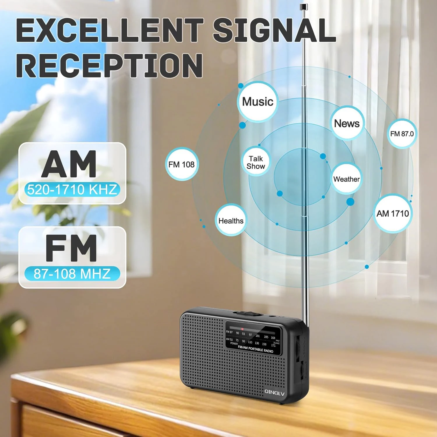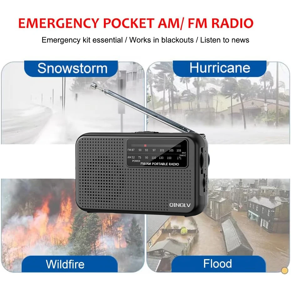 Lecteur radio AM/FM portable, antenne télescopique alimentée par batterie, réception avec prise casque, utilisation intérieure/extérieure et d'urgence - TopDealBox
