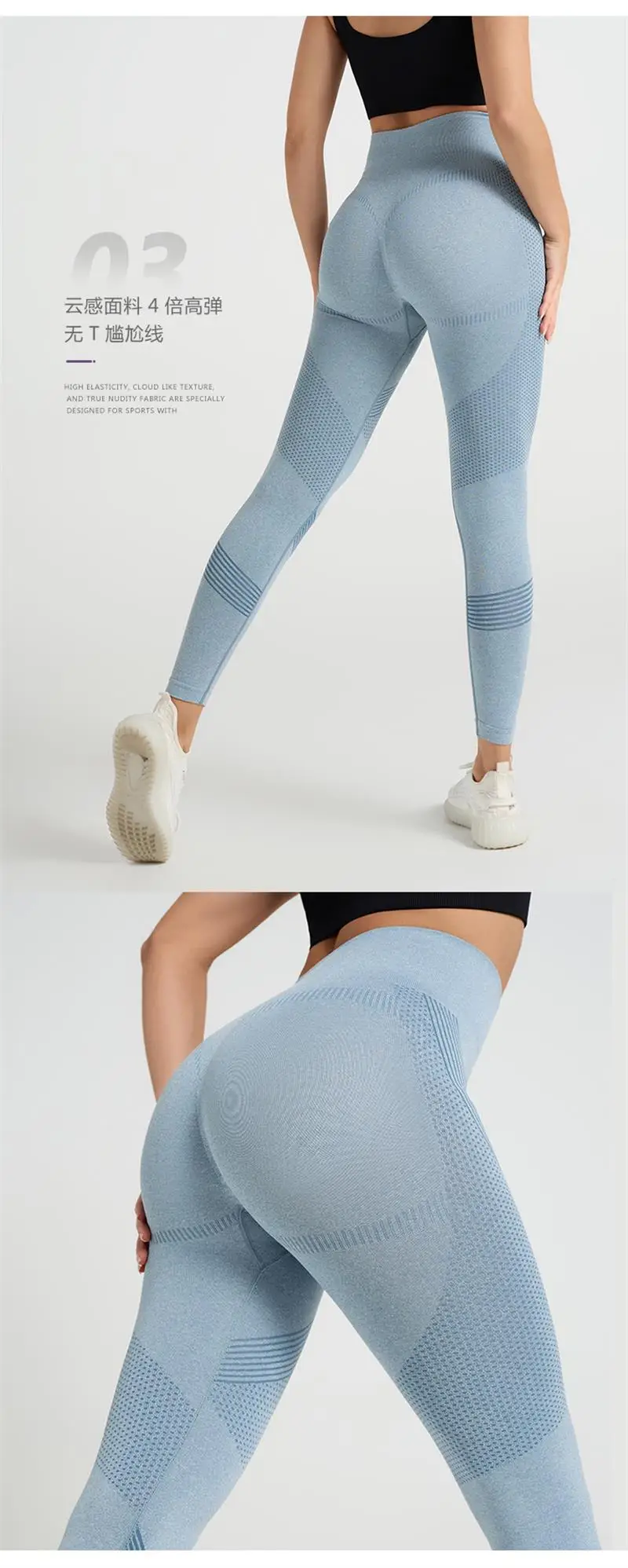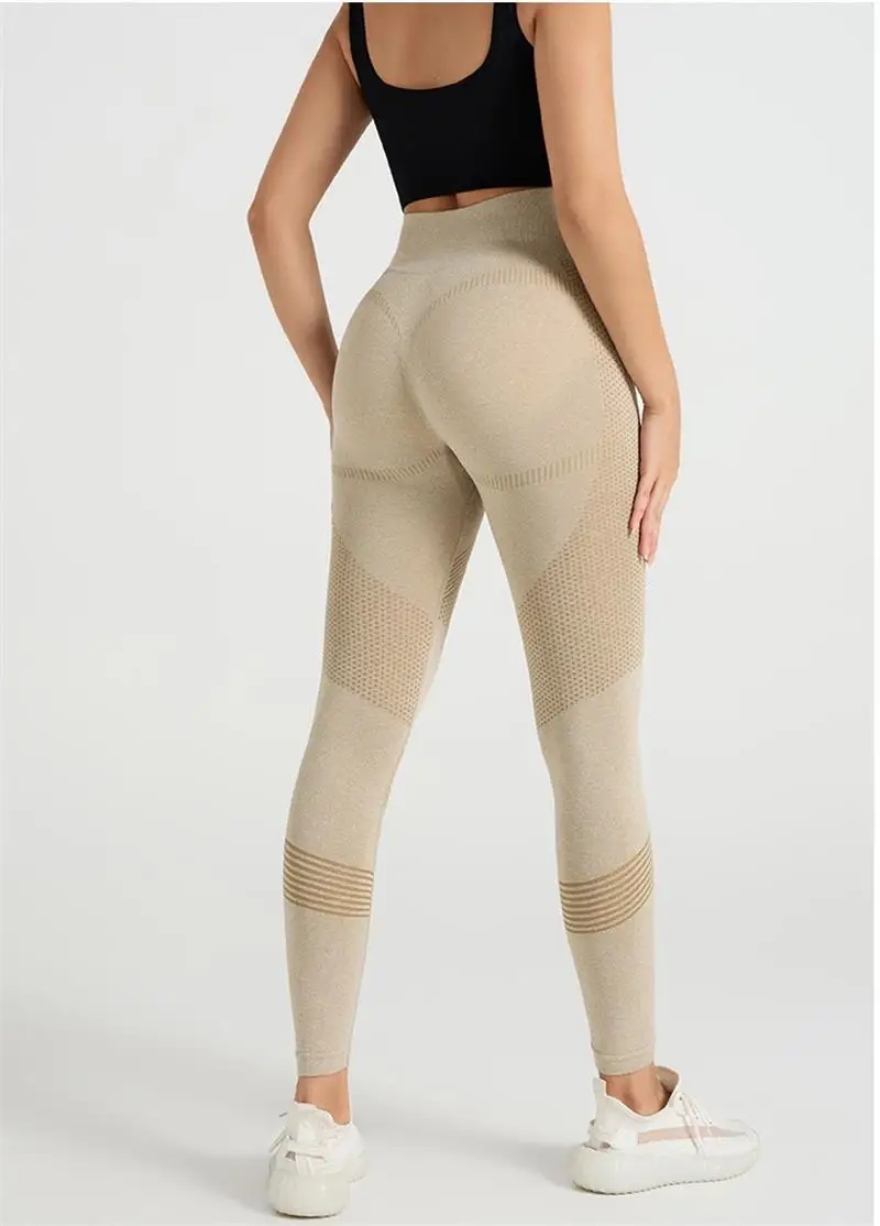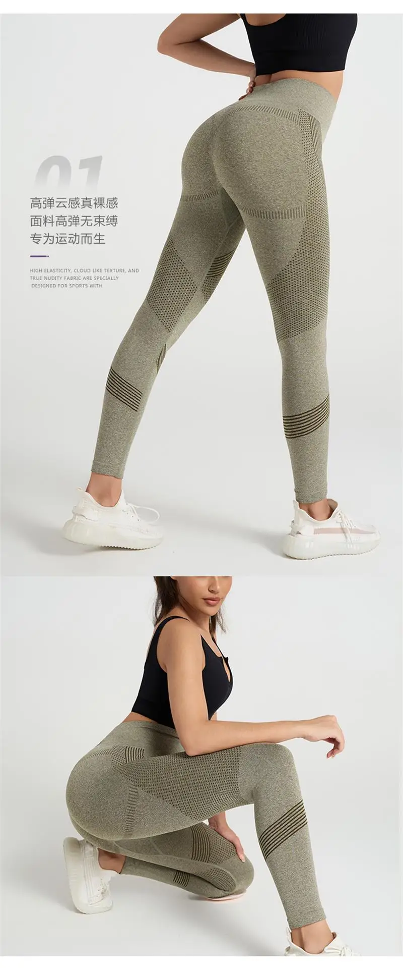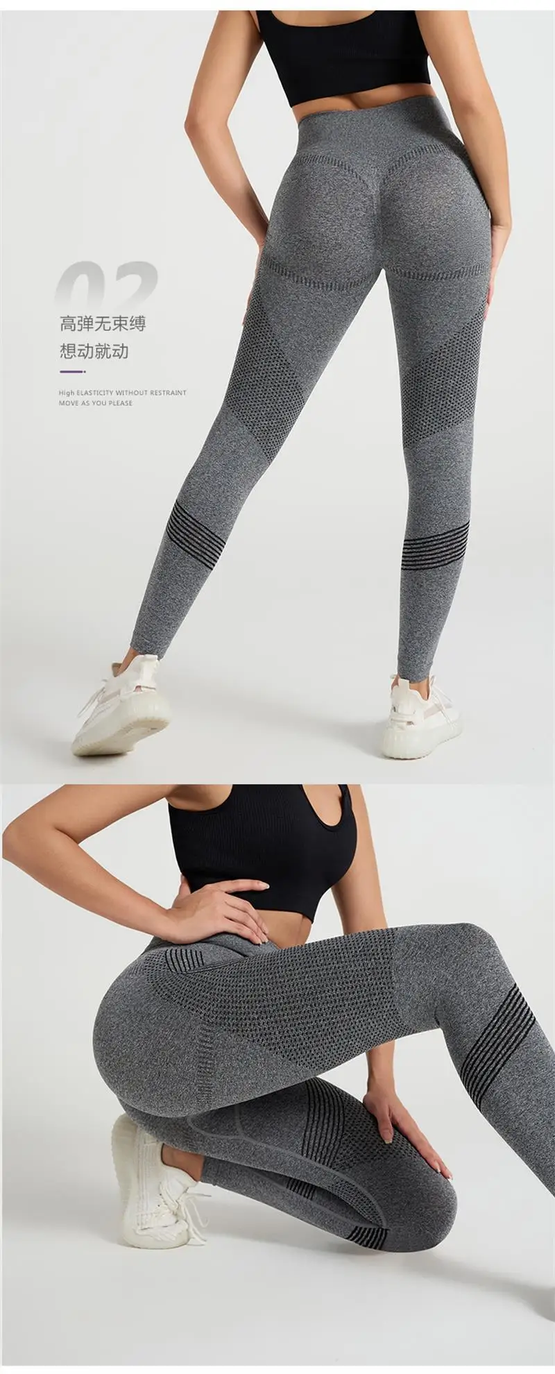Leggings de Fitness taille haute en maille rayée pour femmes, taille haute, levage des hanches, entraînement en plein air, course à pied, pantalons élastiques à la mode - TopDealBox