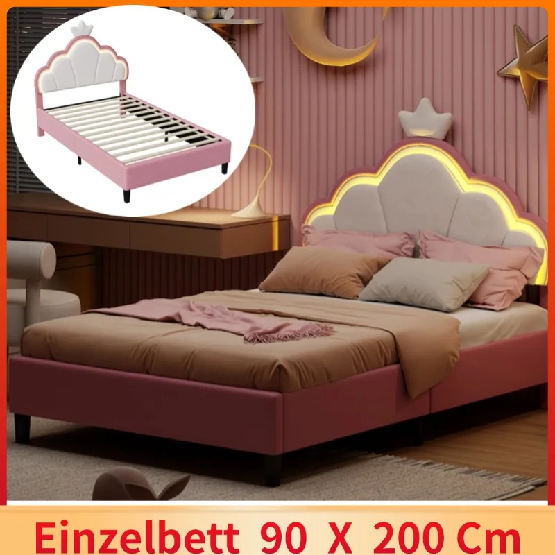 ♡Aperçu rapideLit enfant 90/140x200 cm, Lit simple rembourré avec éclairage LED, tête de lit couronnes et sommier à lattes, en velours, rose216.44 EURPopulaire★★★★★★4.9