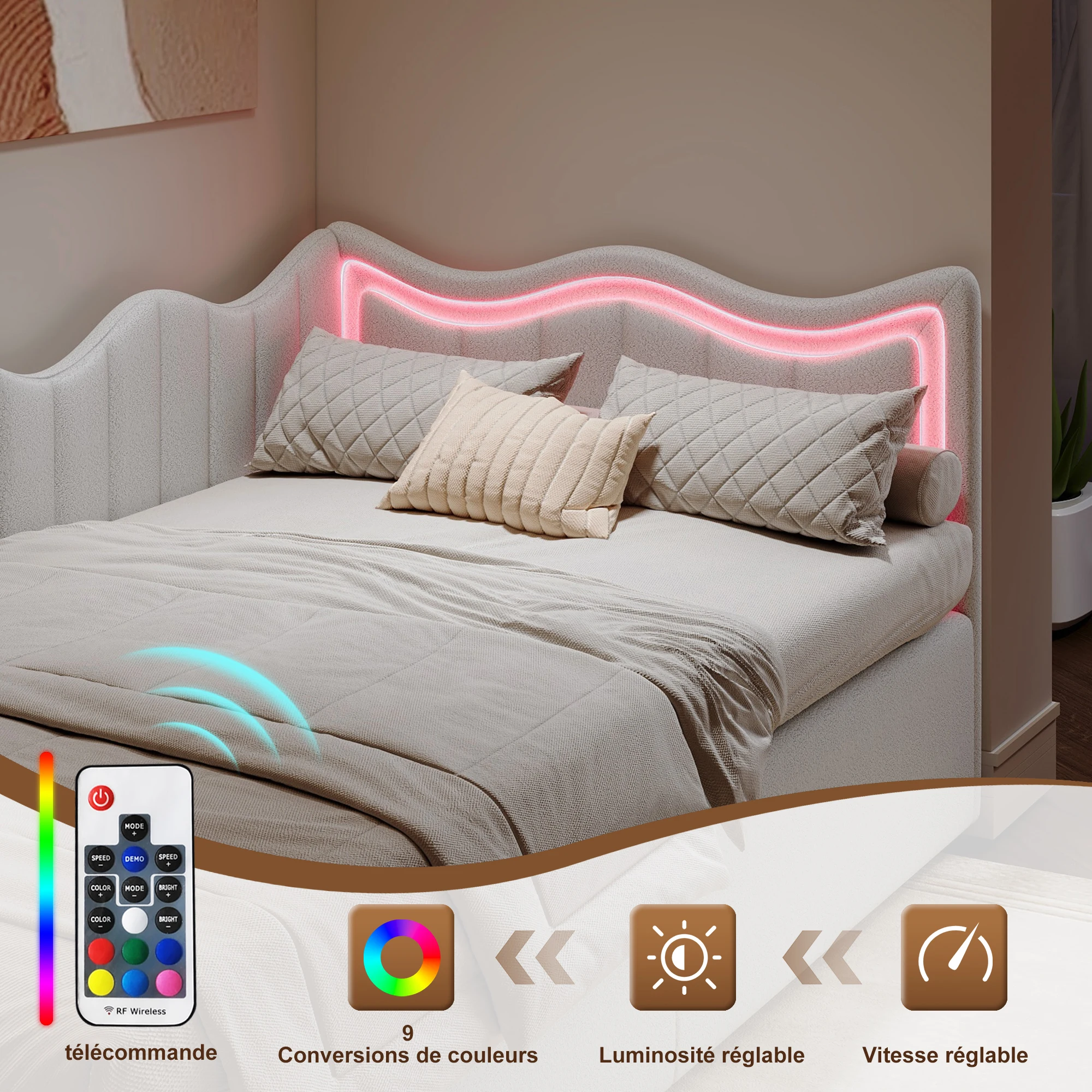 ♡Aperçu rapideLit enfant 90/140x200 cm, Lit simple rembourré avec éclairage LED, tête de lit couronnes et sommier à lattes, en velours, rose161.53 EURPopulaire★★★★★★4.9