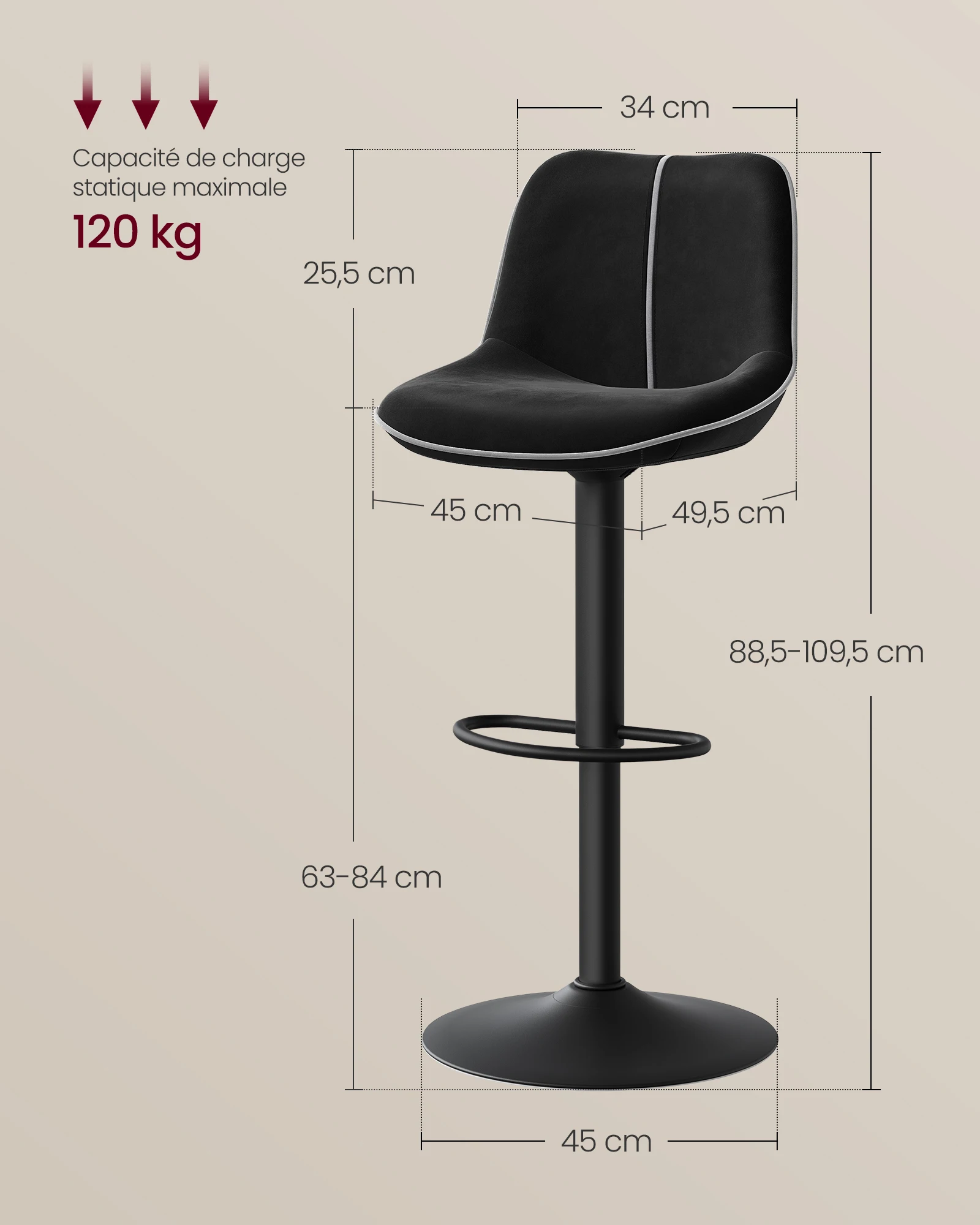 ♡Aperçu rapideVASAGLE Lot de 4 Tabourets de Bar, Pivotants, Réglables en Hauteur, Dossier Ergonomique, PU, Base Métallique, Modernes, pour Îlot de Cuisine, Bar150.31 EUREUR 164.26Populaire★★★★★5.0