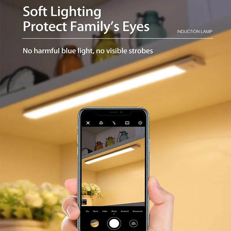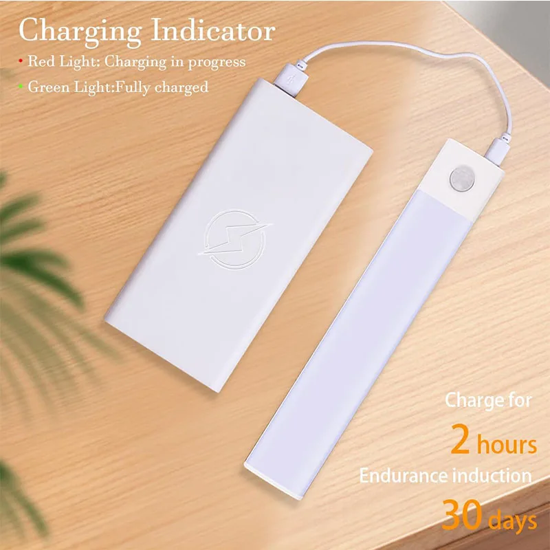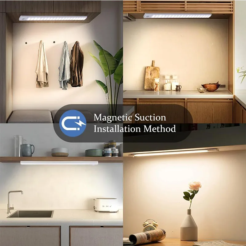 Lumière à capteur de mouvement Ultra-mince 10-60cm, support magnétique, Rechargeable par USB, réglage de 3 couleurs, lumière sous-meuble pour le bureau et la maison - TopDealBox