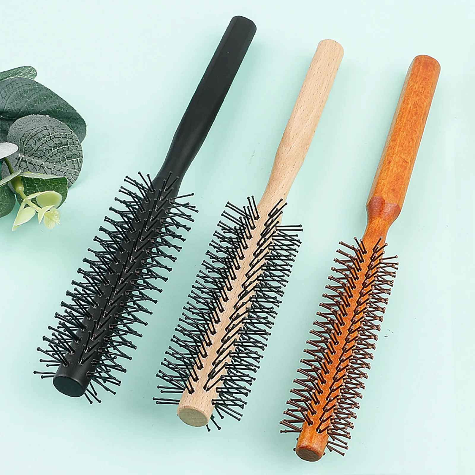 Manche en bois dents en Nylon brosse circulaire peigne à rouleau bouclé racine de cheveux moelleux cheveux raides peigne multifonctionnel pour hommes et femmes - TopDealBox