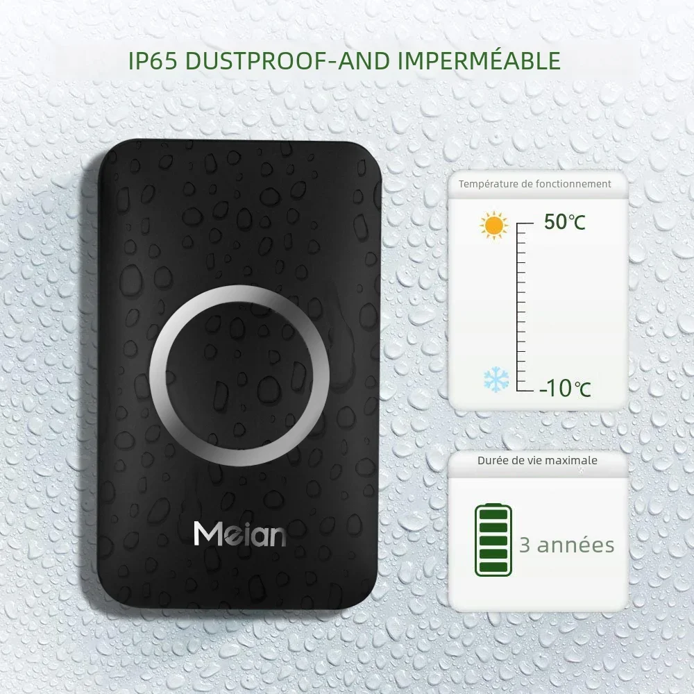 ♡Aperçu rapideMeian IP65 sonnette sans fil étanche maison intelligente sonnette de porte extérieure 60 sonnerie 5 Volume réglable LED Flash sonnette de porte intelligente8.79 EUREUR 69.62Populaire★★★★★★4.8