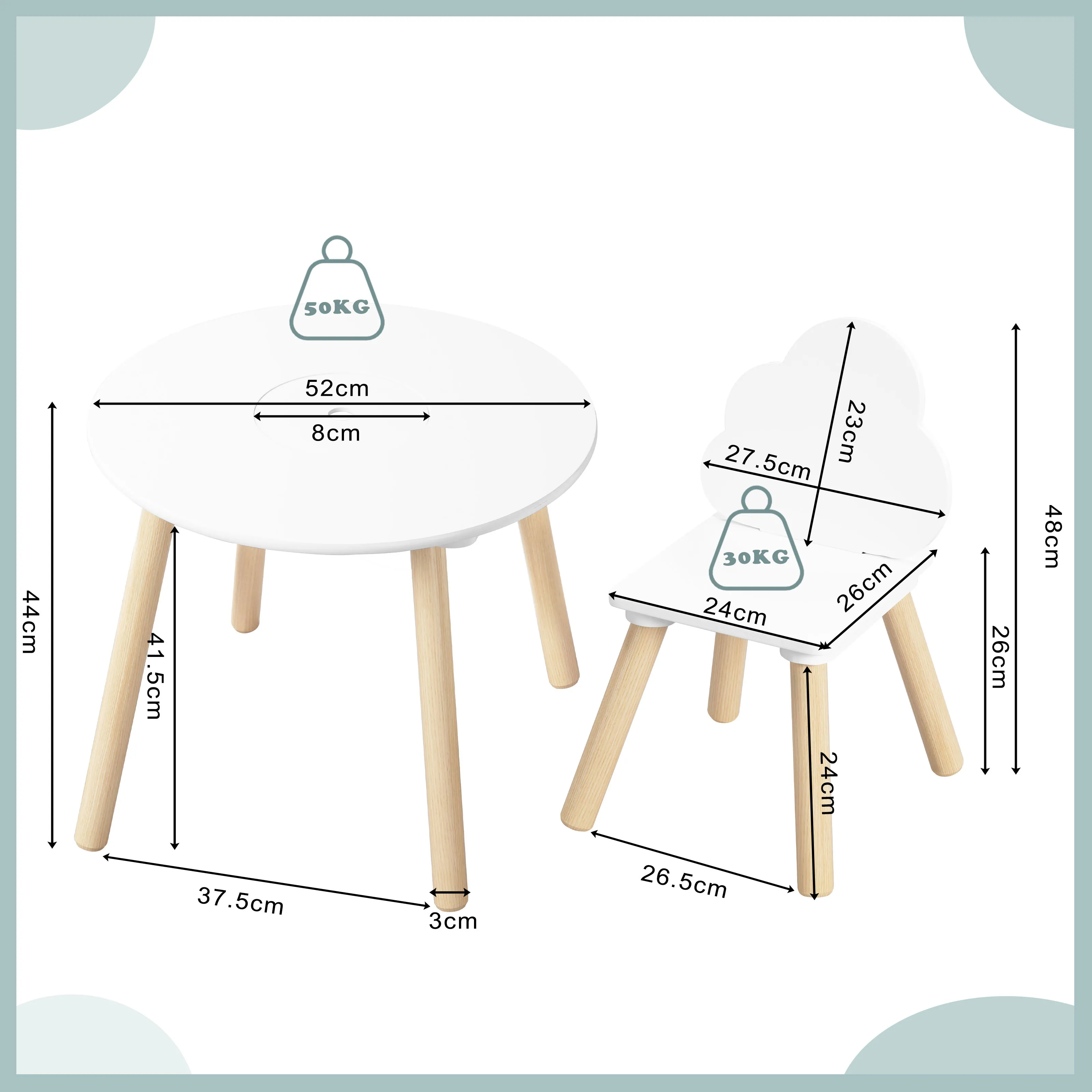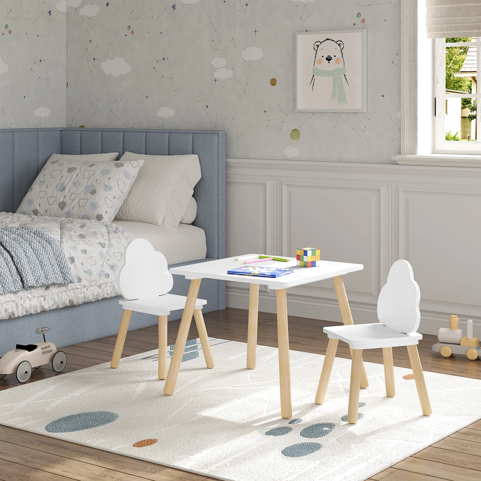 WOLTU Table pour enfants avec 2 chaises dossier nuage pieds en bois massif pour les tout-petits enfants d'âge préscolaire enfants lecture stockage des aliments - TopDealBox