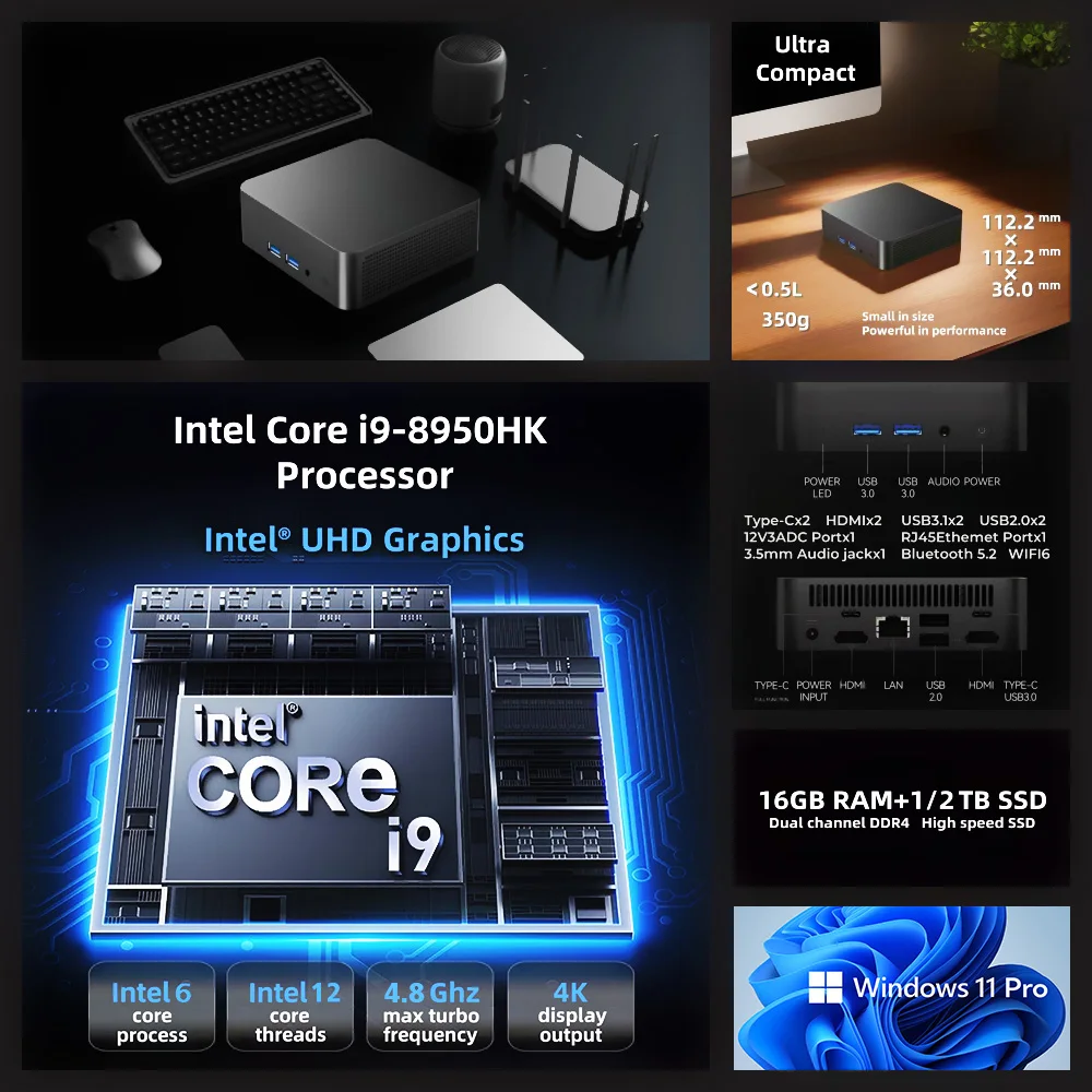 ♡Aperçu rapide2026 Mini PC Intel Core i9 8950HK i3 6100 Windows 11 Pro 16GB RAM ordinateur de poche 1 to 2 to SSD 4K ordinateur de bureau de jeu WiFi 6 bureau163.67 EUREUR 729.69Populaire★★★★★5.0