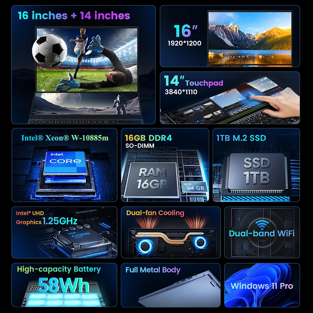 ♡Aperçu rapideN-one-Ordinateur portable Nbook Fly, Intel®Xeon, Xeon®W-10885m Windows 11 Pro 16 Go + 1T Double Écran 16 en effet + 14 en effet Tactile Sub Office Study Computer689.99 EURPopulaire