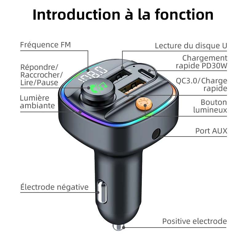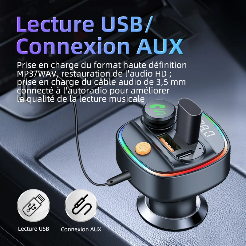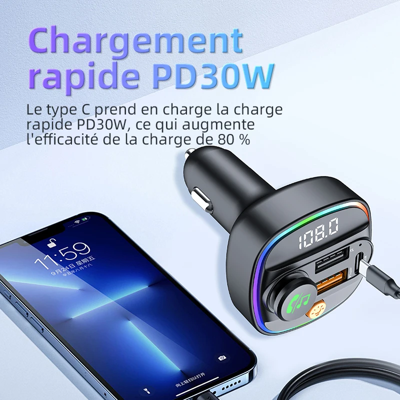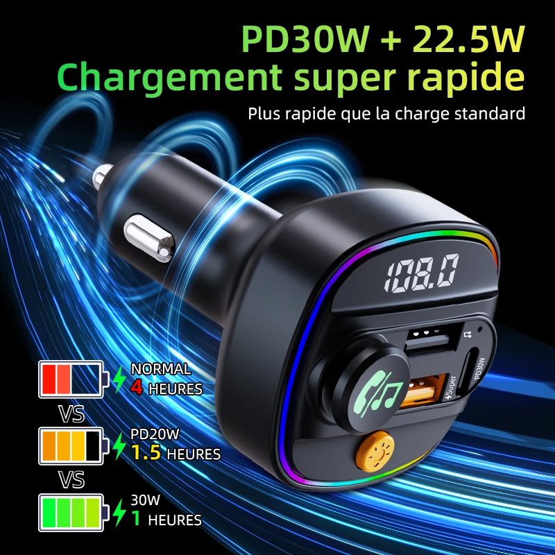 Bluetooth 5.3 transmetteur FM mains libres voiture auxiliaire Radio modulateur lecteur MP3 avec 22.5w et adaptateur de charge rapide pd30w accessoires de voiture - TopDealBox